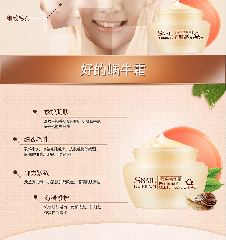 商品名称:莱蔻 蜗牛精华霜 滋润嫩滑 修护肌肤 50g