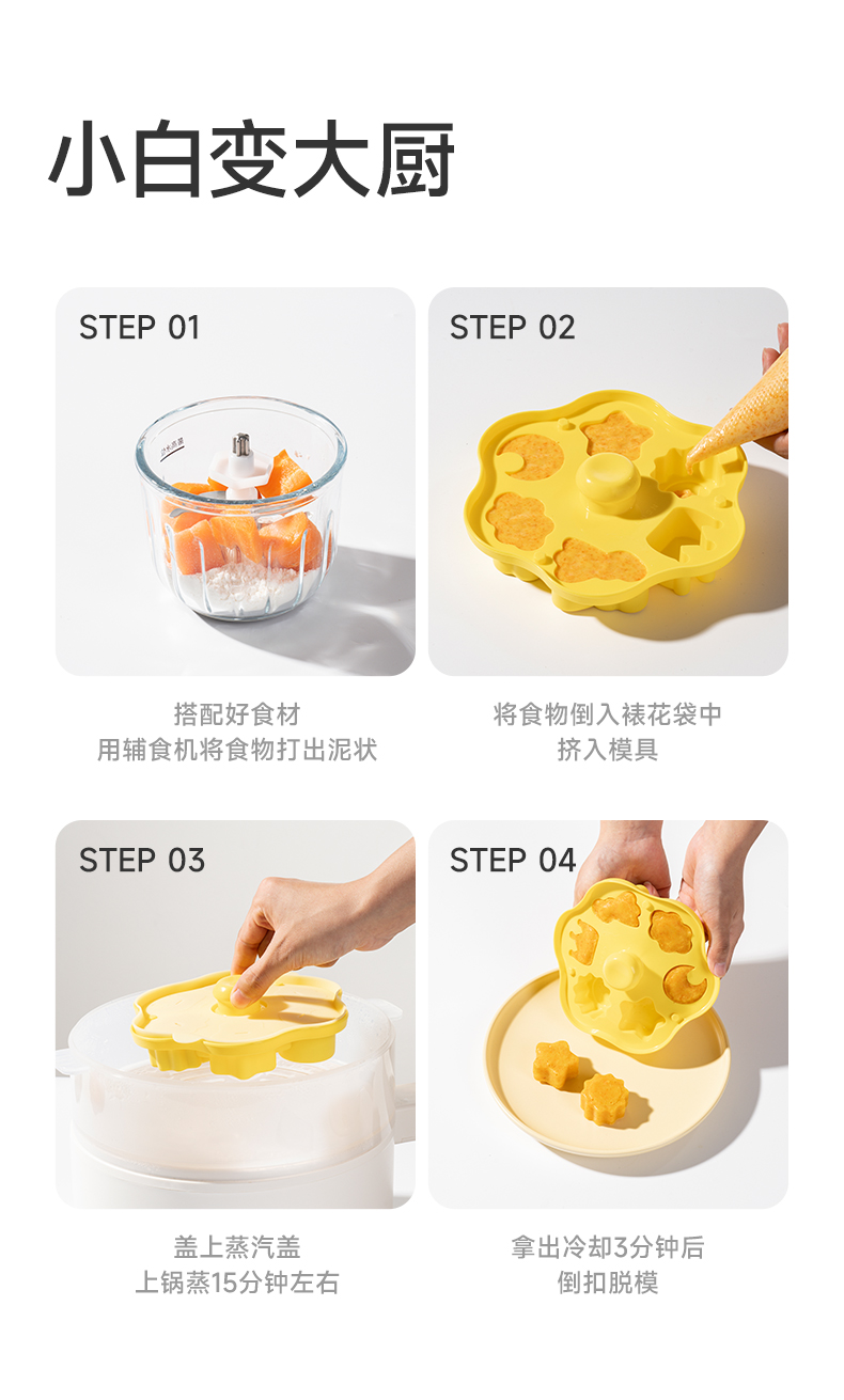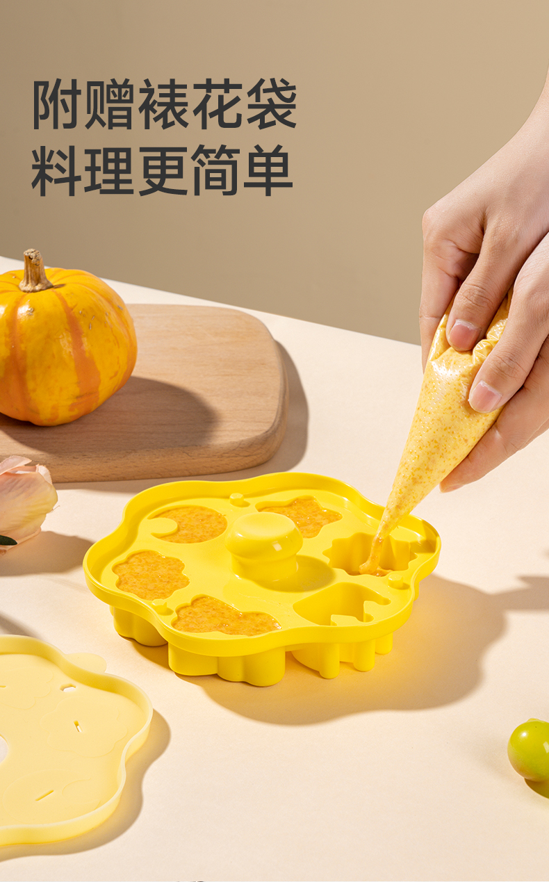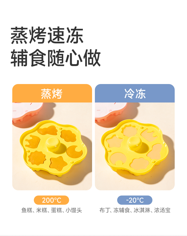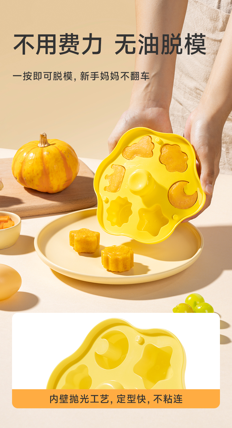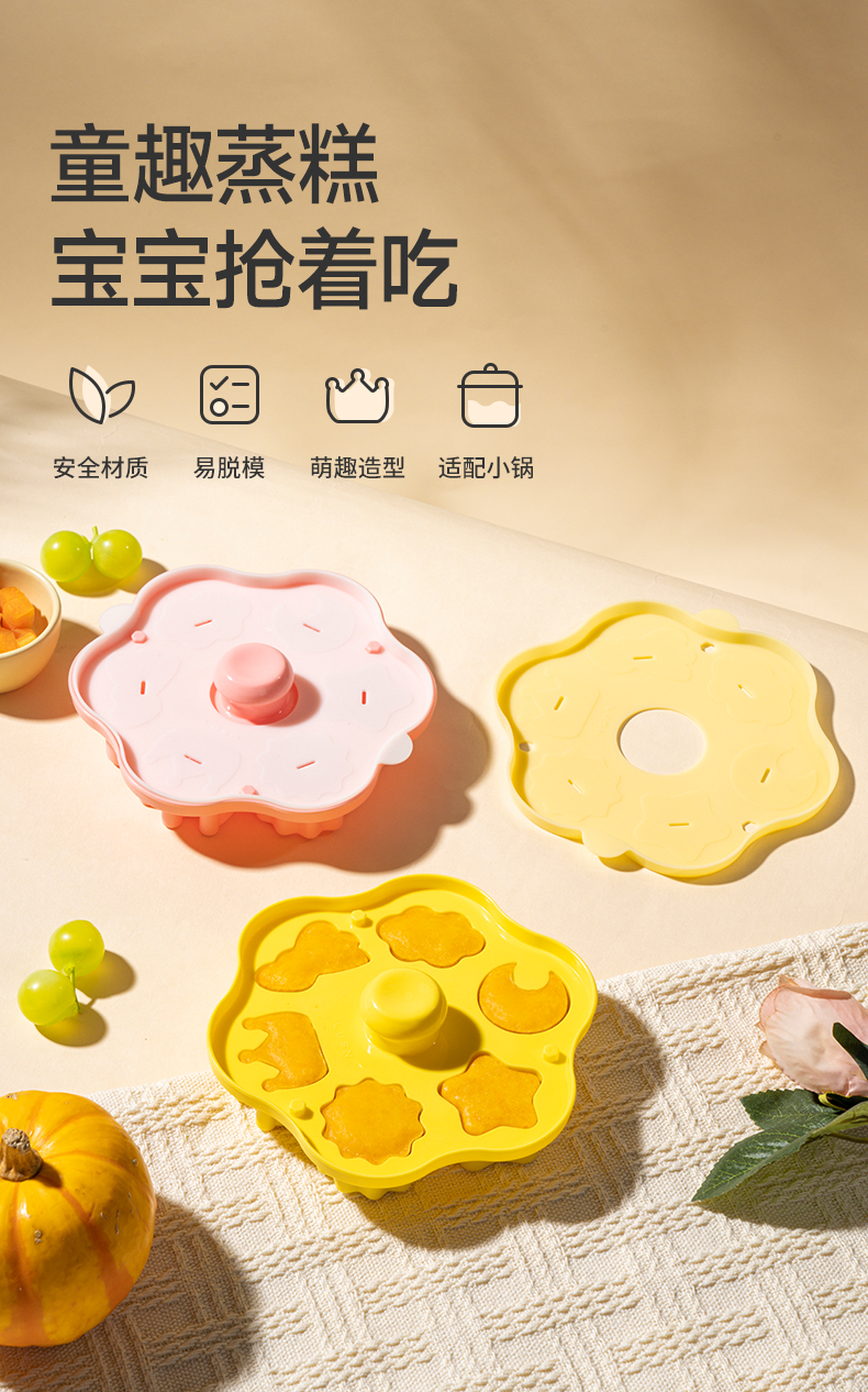 如山辅食模具宝宝蛋糕蒸糕硅胶婴儿圆形食品级布丁磨具可蒸煮工具