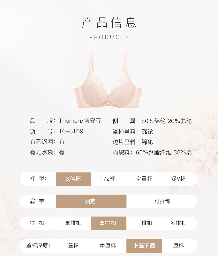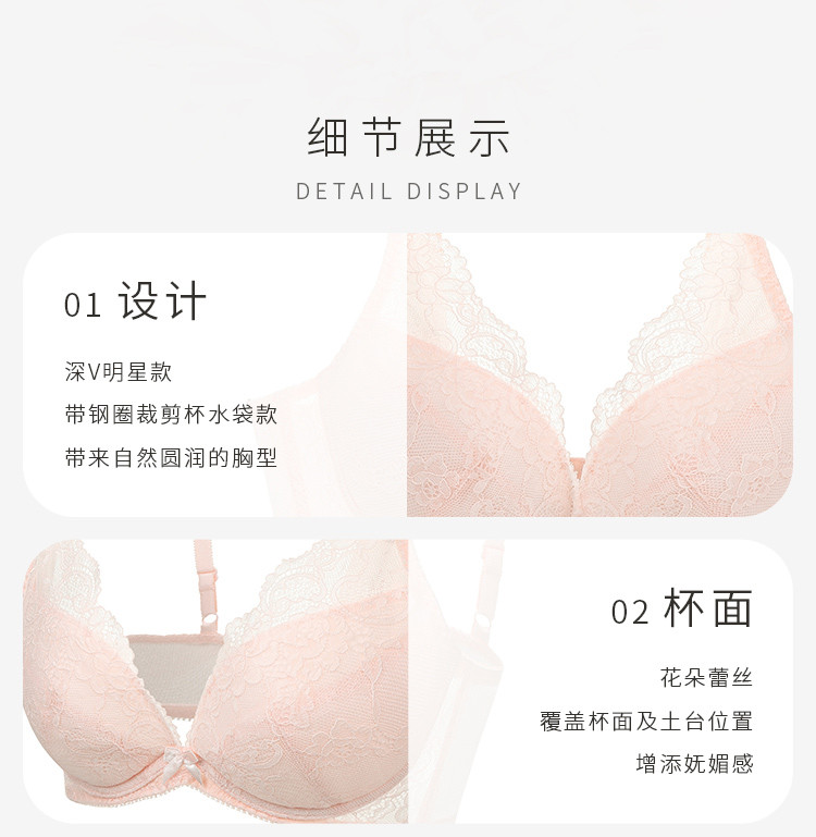 商品名称:【聚拢水袋】黛安芬舒适调整可拆水袋深V蕾丝胸罩16-8169 738122