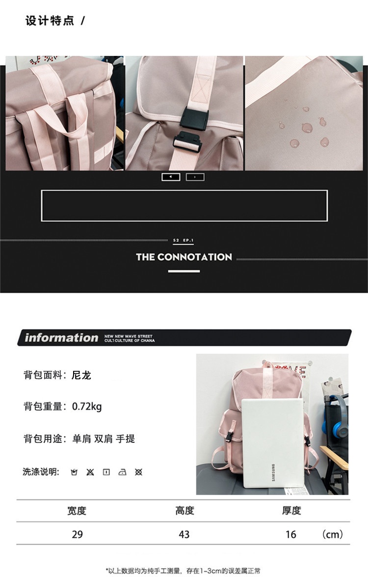 商品名称:彤彤兔 新款女生双肩包通勤潮牌街头百搭情侣背包简约纯色校园大学生书包男