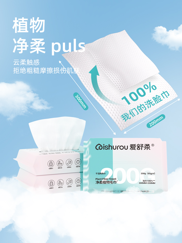 商品名称:洗脸巾一次性棉柔洗面巾加厚加大悬挂抽取式家庭美容院专用擦脸巾200g约34-36抽 20*30cm
