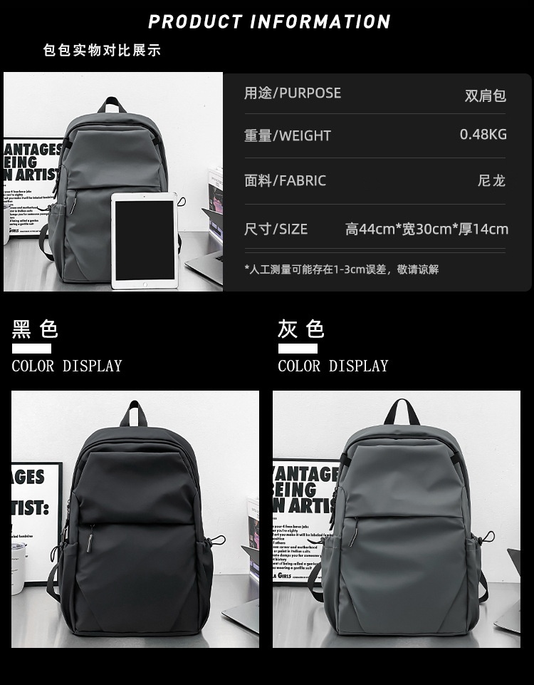 商品名称:彤彤兔 百搭潮流双肩包男士简约防水电脑背包日系校园大学生书包轻便旅行包