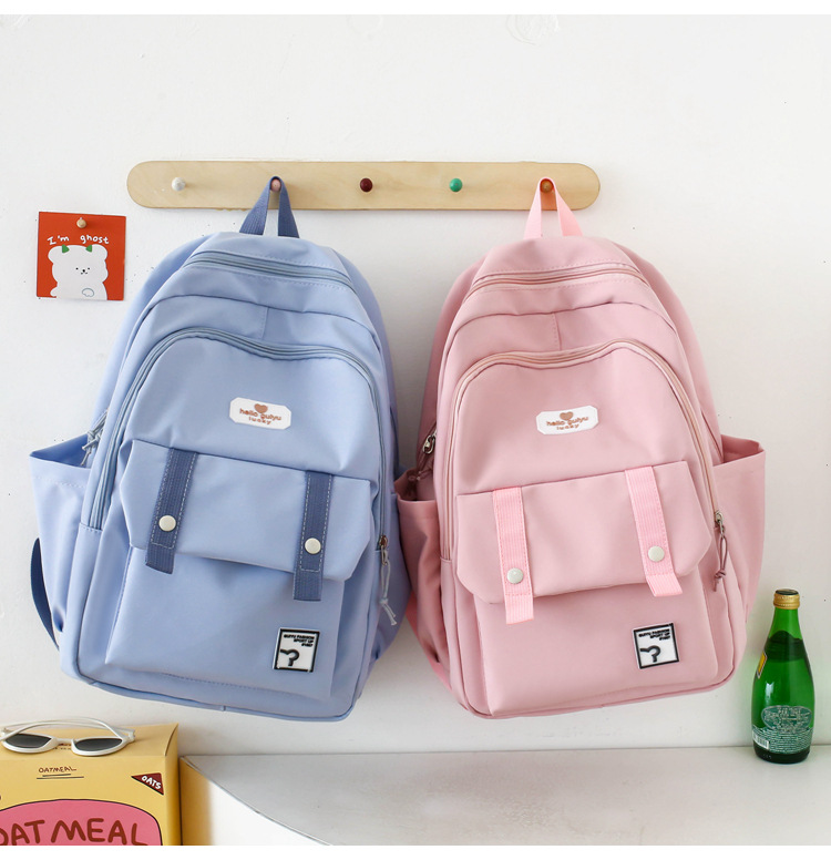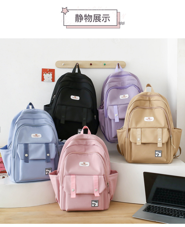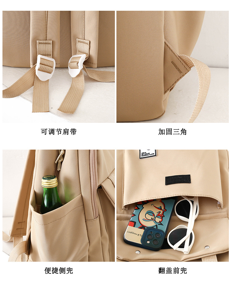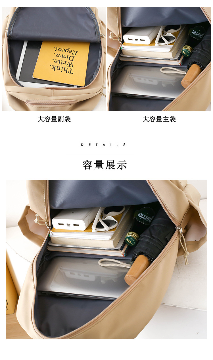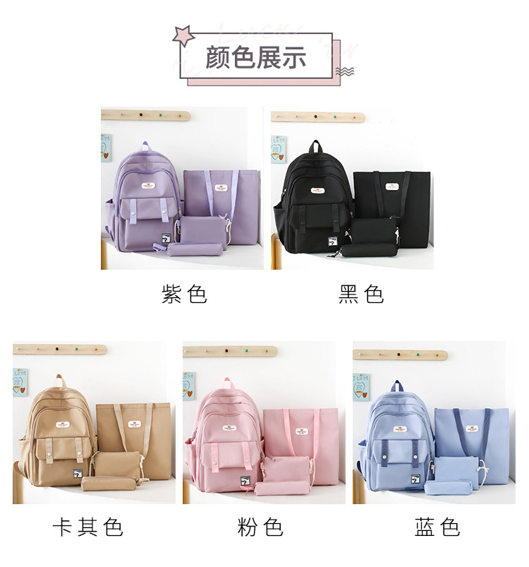 商品名称:彤彤兔 纯色书包女校园大学生书包时尚韩版四件套背包大容量韩版校园双肩包