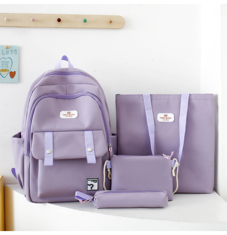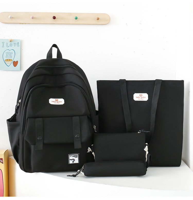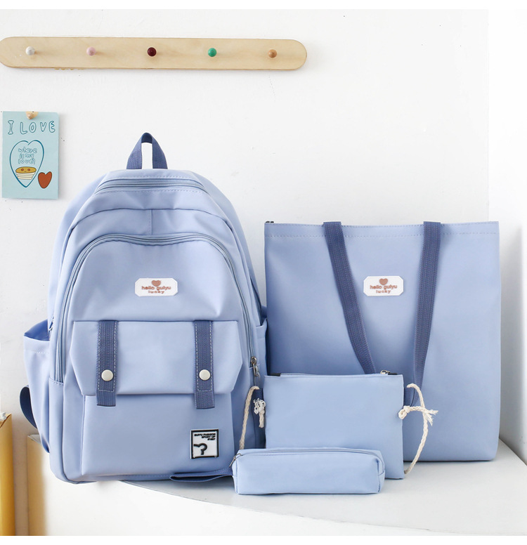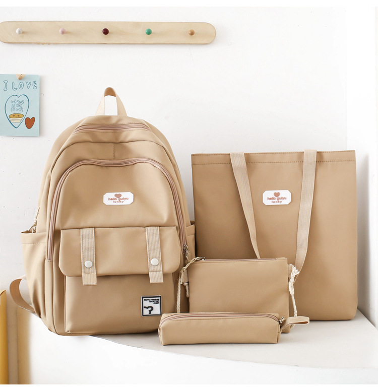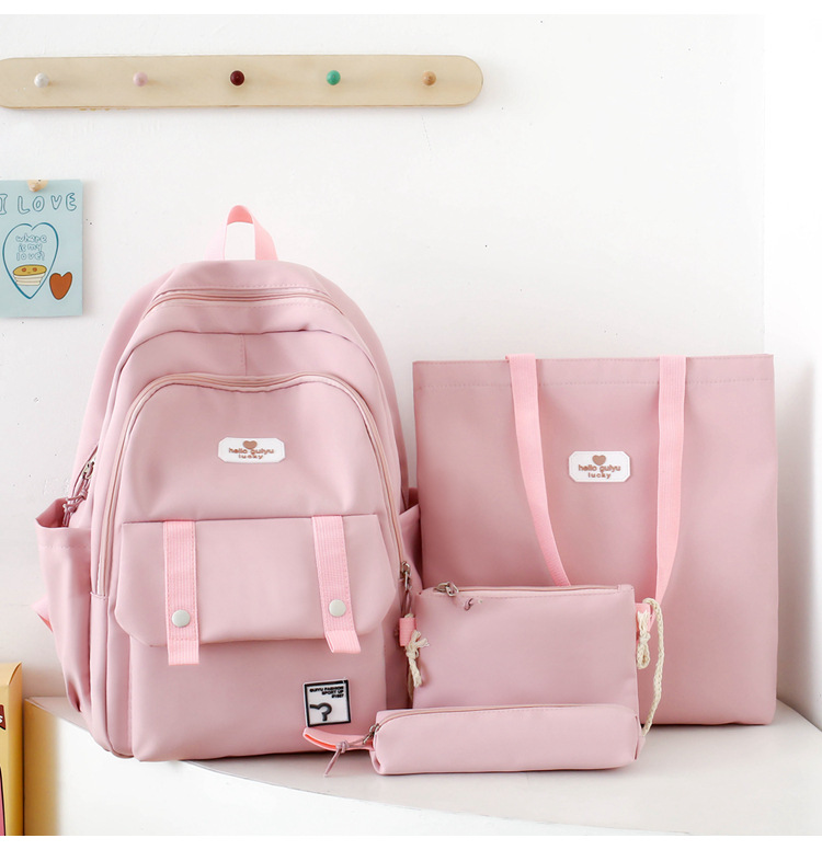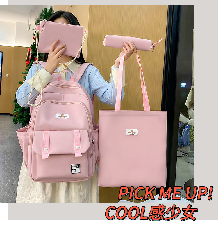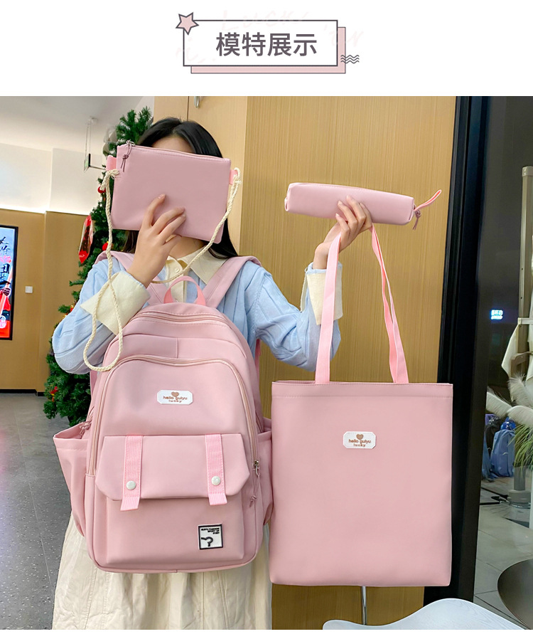 彤彤兔 纯色书包女校园大学生书包时尚韩版四件套背包大容量韩版校园双肩包