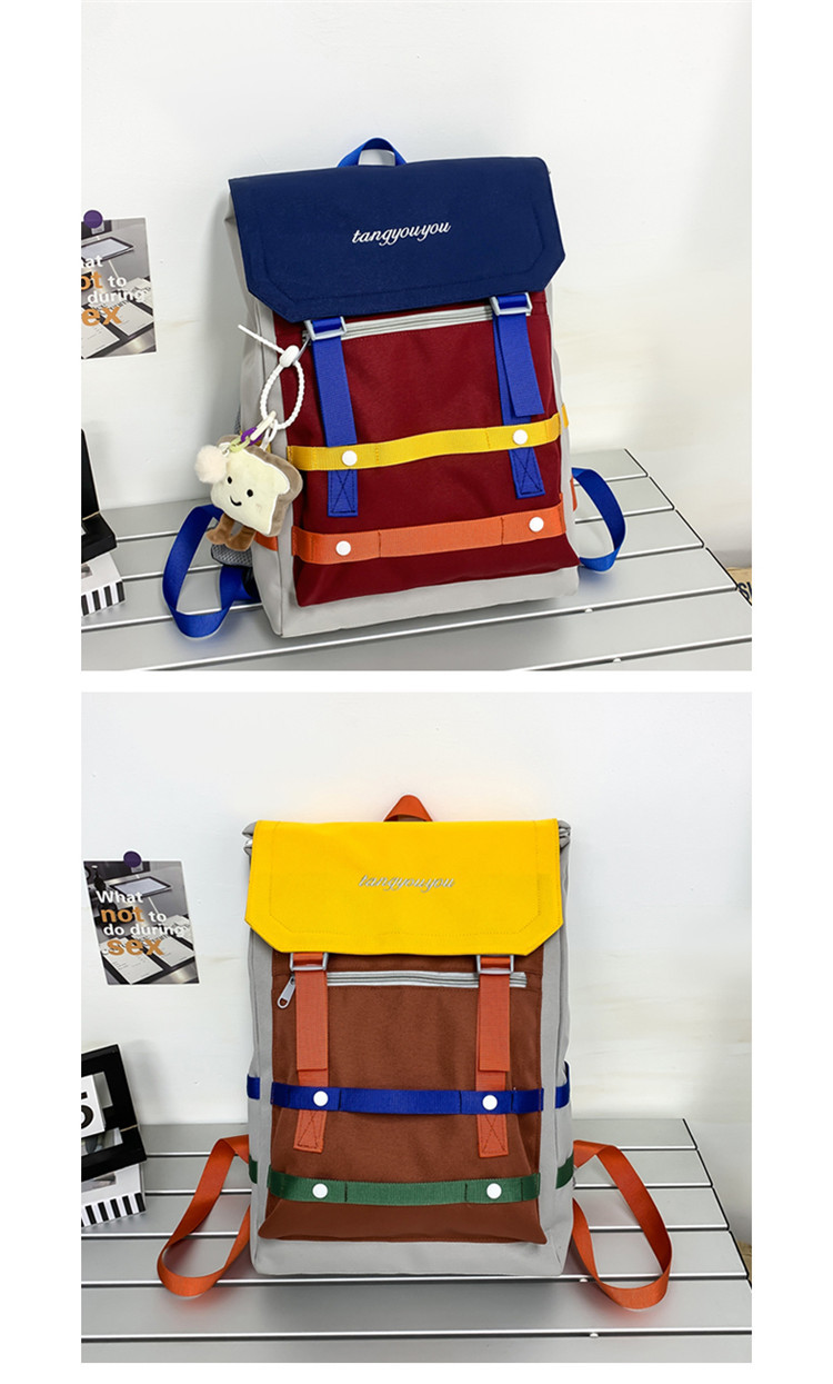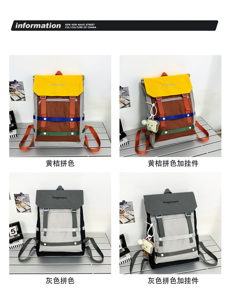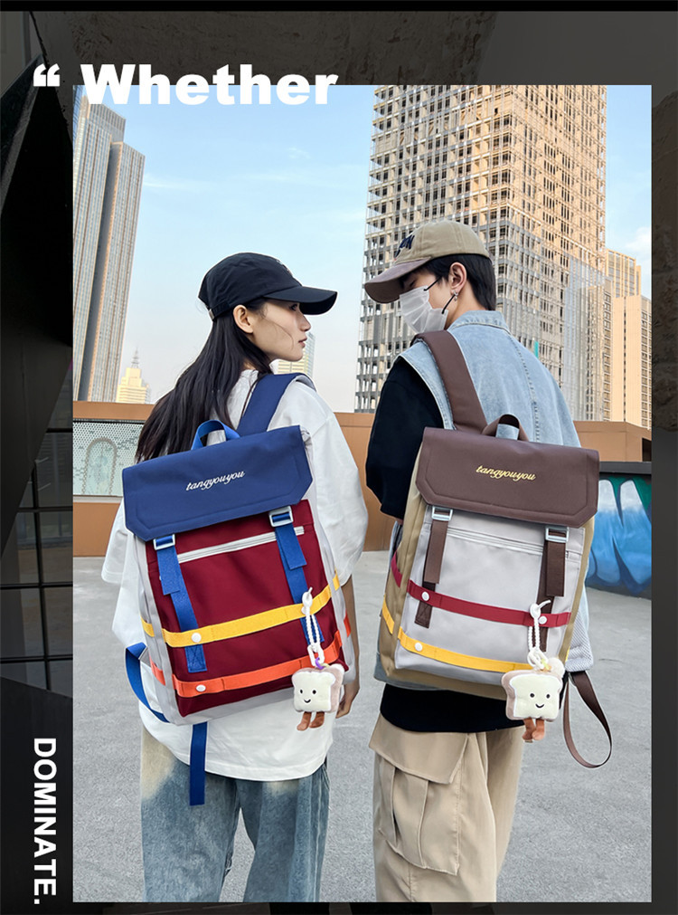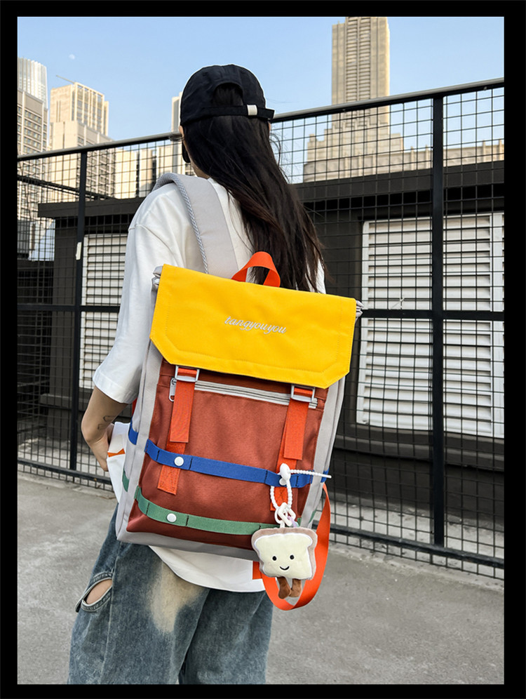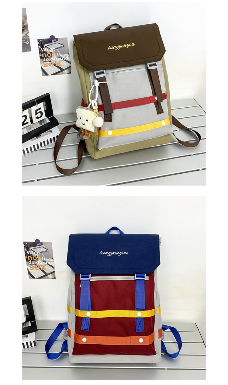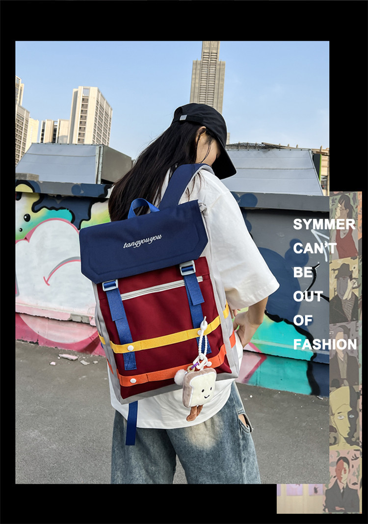 商品名称:彤彤兔 校园大学生书包女小众拼色背包新款高颜值轻便大容量双肩包男款旅行包