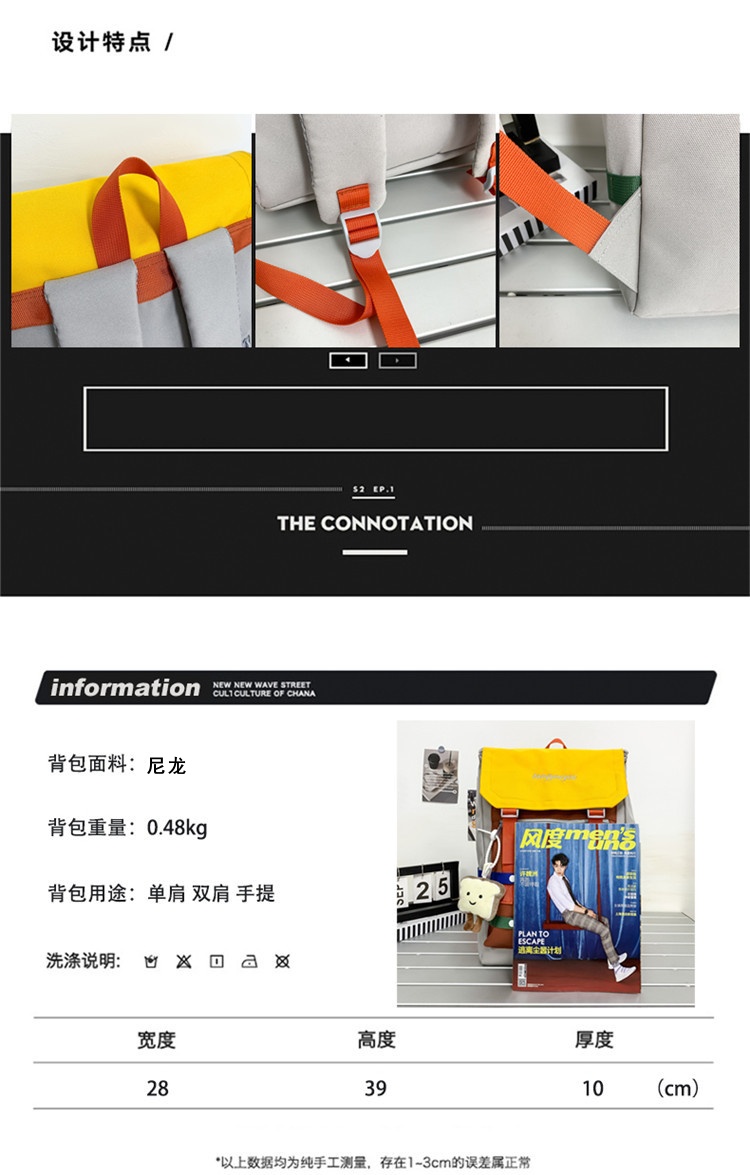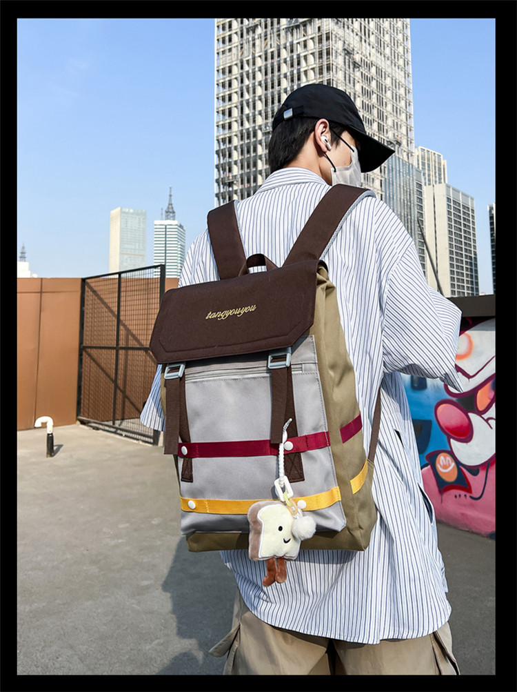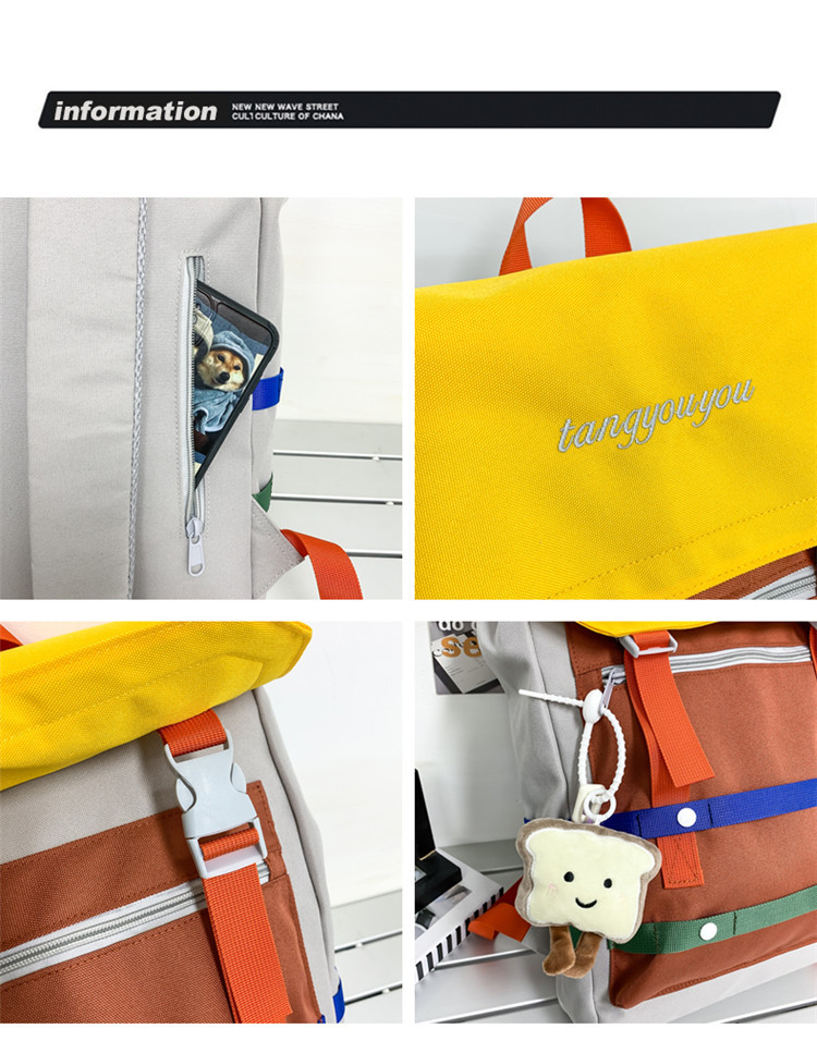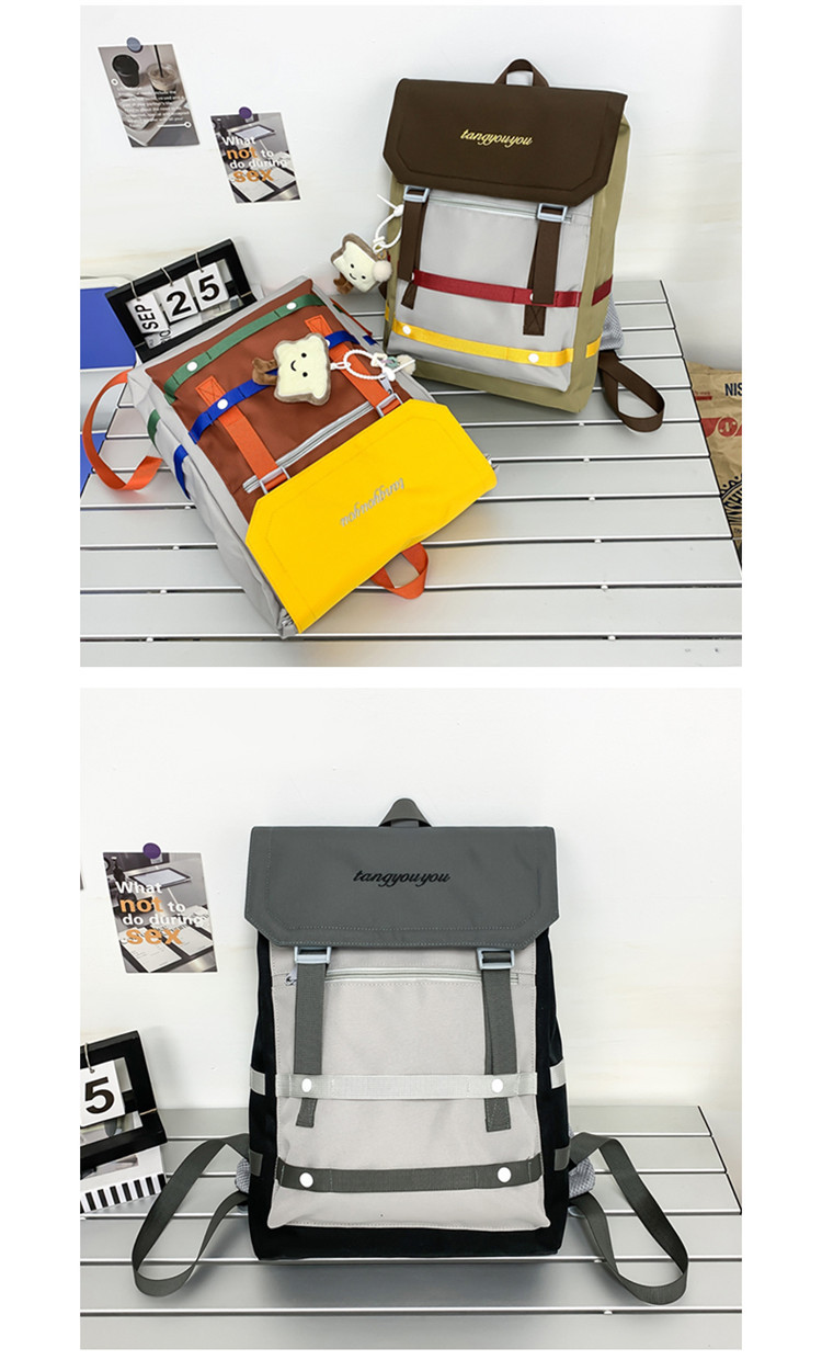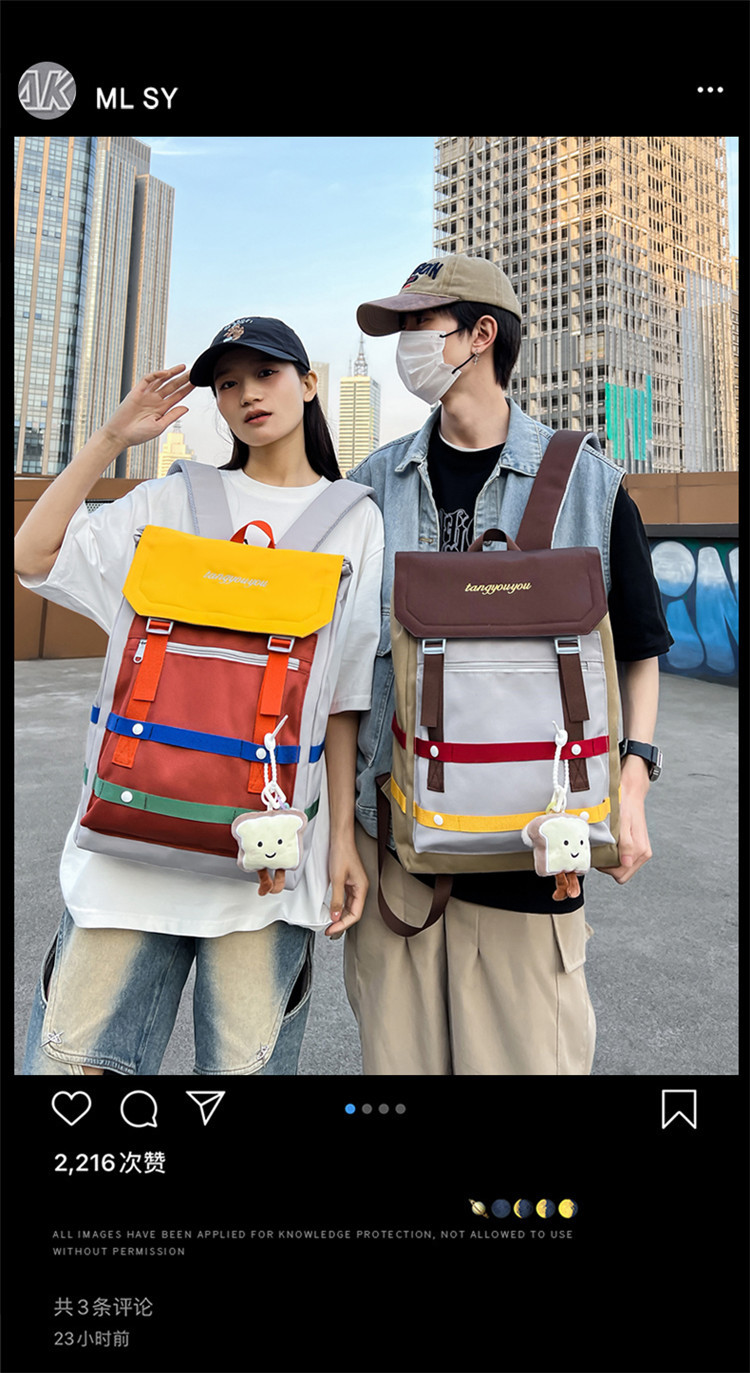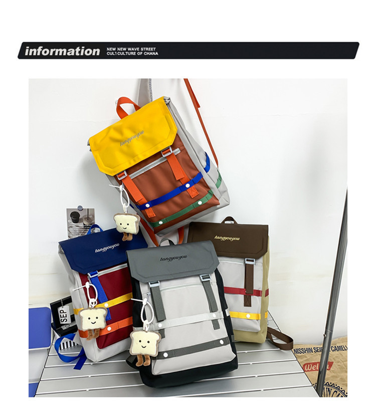 商品名称:彤彤兔 校园大学生书包女小众拼色背包新款高颜值轻便大容量双肩包男款旅行包