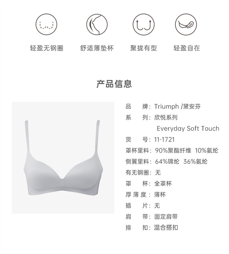 商品名称:【无痕无钢圈】黛安芬内衣薄杯光面女文胸小胸聚拢11-1721 369480