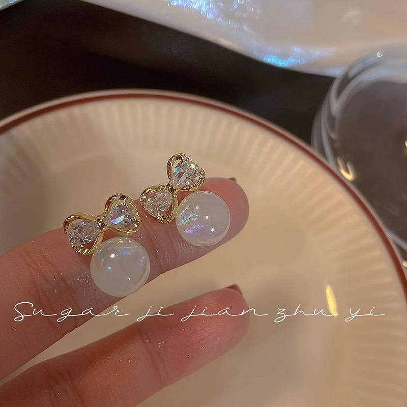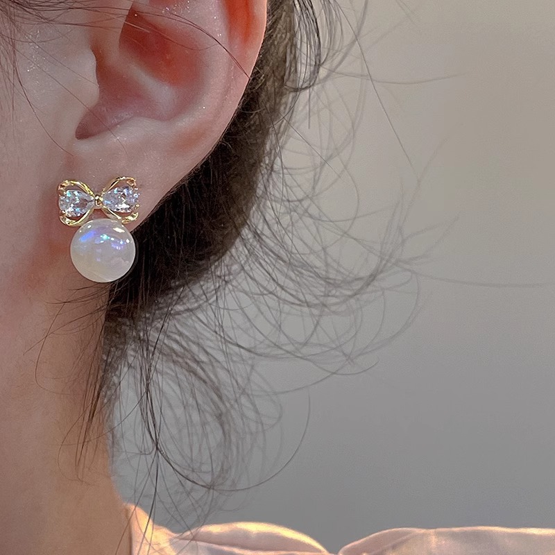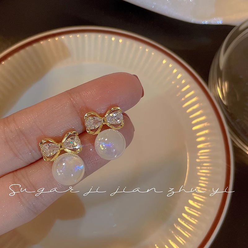 商品名称:彤彤兔 S925银针独特设计耳饰人鱼姬珍珠耳环轻奢锆石蝴蝶结女新款潮耳钉