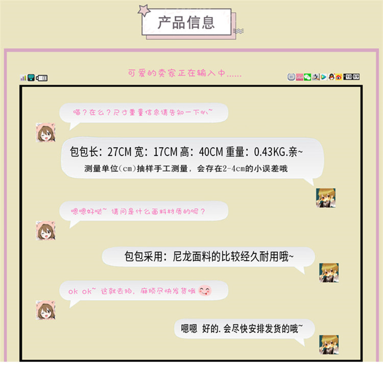 商品名称:彤彤兔 日常通勤夹口文艺软妹校园大学生书包手提单肩双肩包休闲