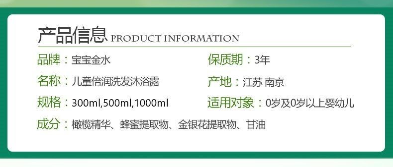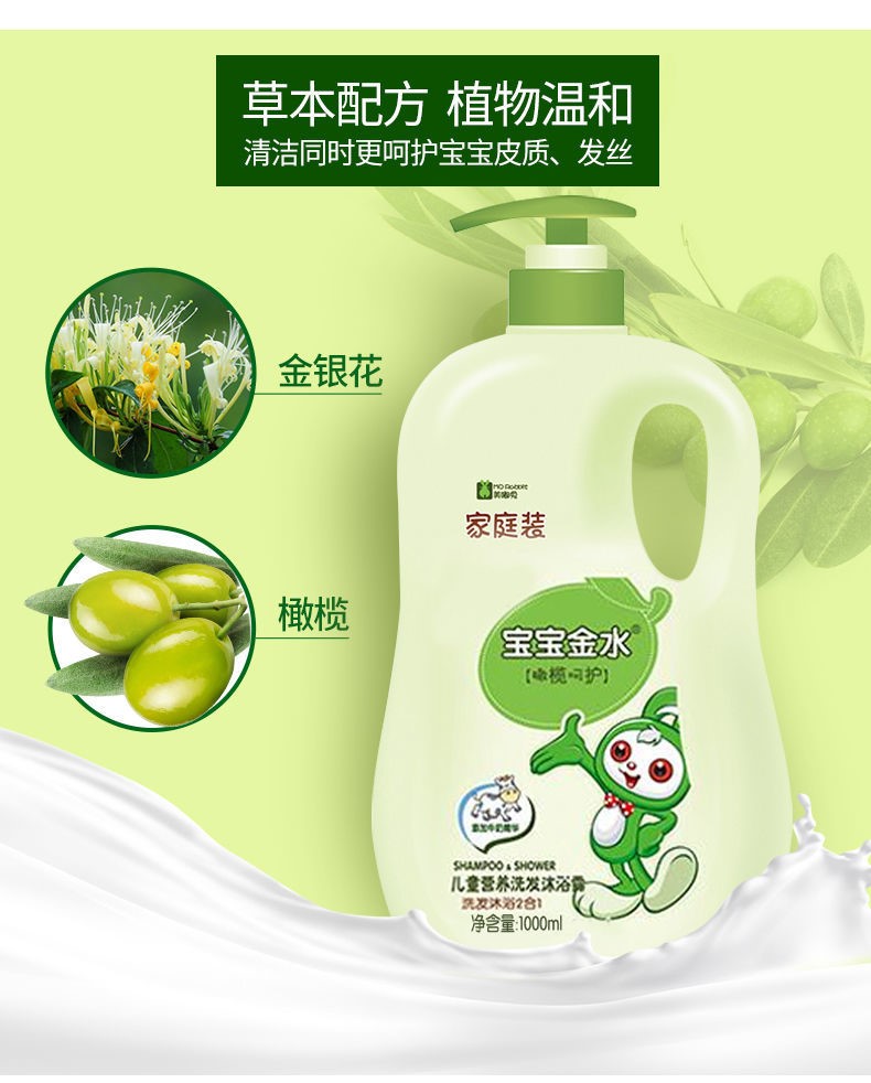 商品名称:宝宝金水婴幼儿洗沐二合一儿童洗发沐浴露橄榄牛奶/蜂蜜精华500ml