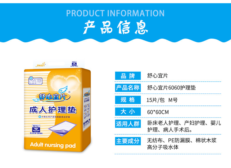 商品名称:舒心宜片成人护理垫老人纸尿裤尿不湿老年人纸尿垫纸尿片60*60批发隔尿垫一次性