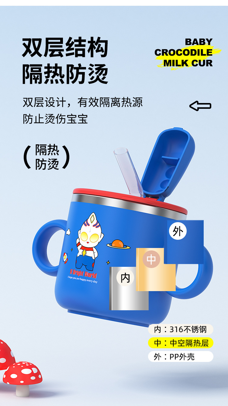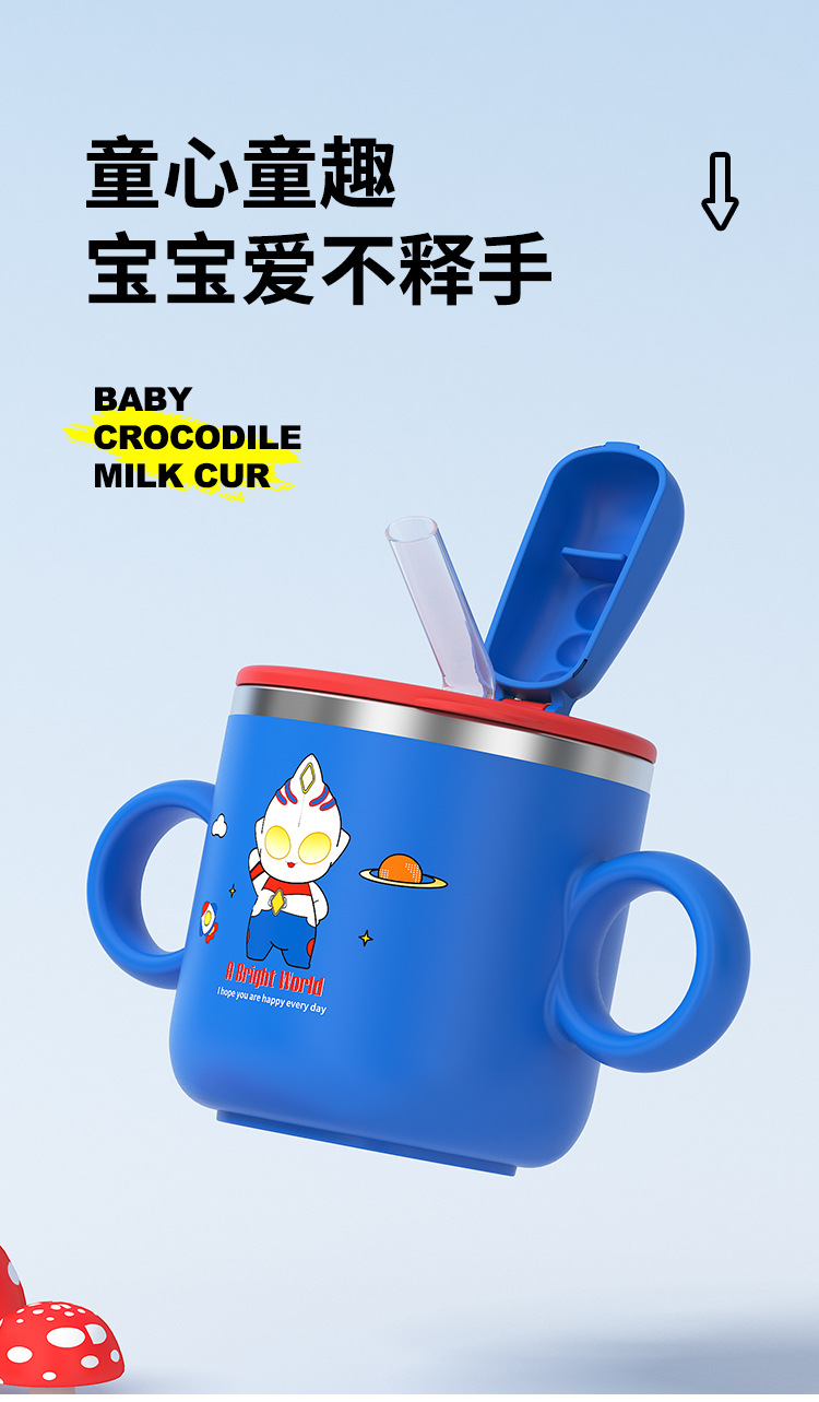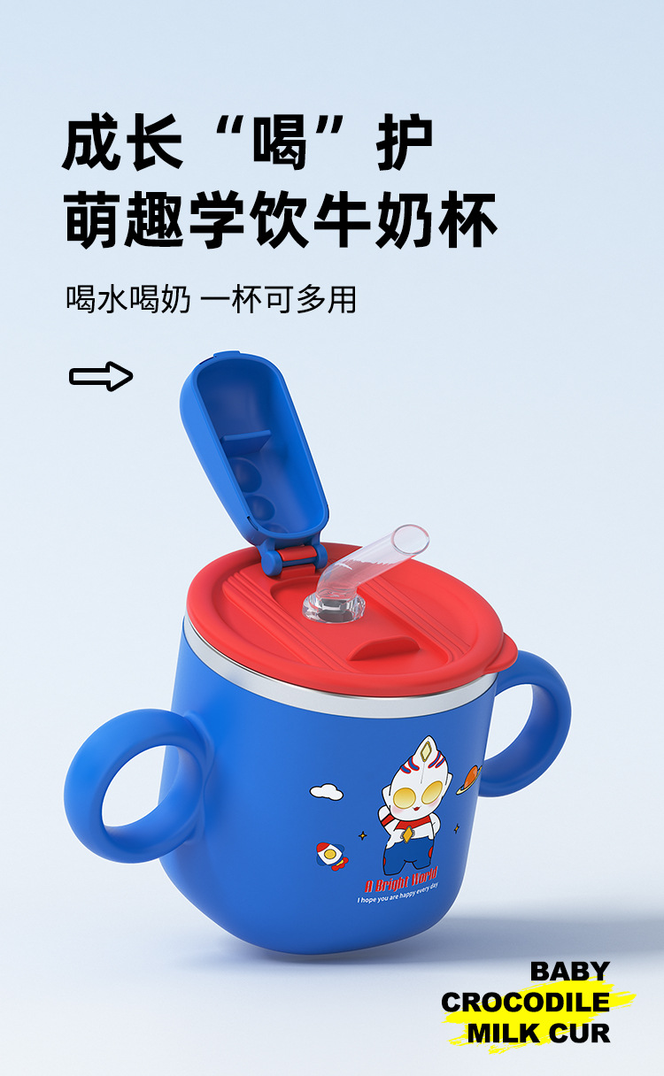 【清仓秒杀】彩盒316宝宝水杯儿童带刻度吸管杯一杯多用牛奶不锈钢喝水泡奶防摔学饮杯