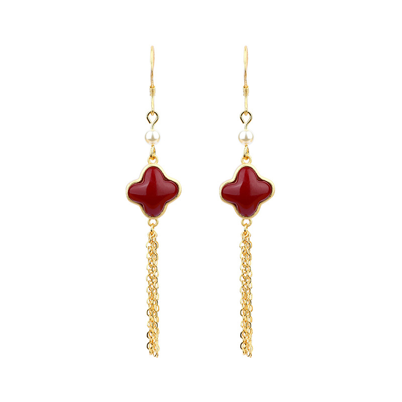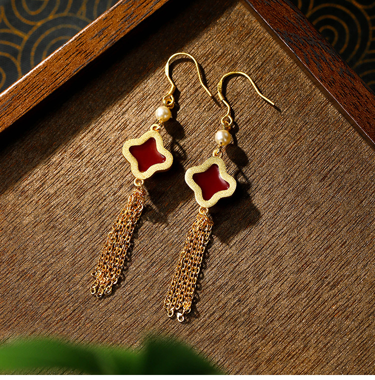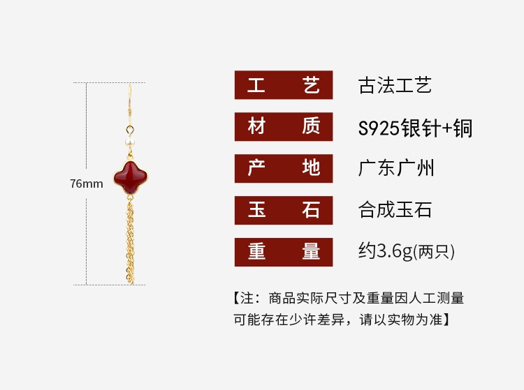 商品名称:彤彤兔 925银针中国风红色系新年喜庆耳环国潮复古气质流苏耳饰