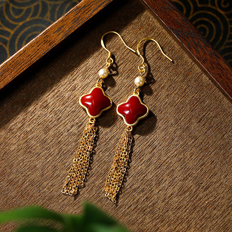 彤彤兔 925银针中国风红色系新年喜庆耳环国潮复古气质流苏耳饰