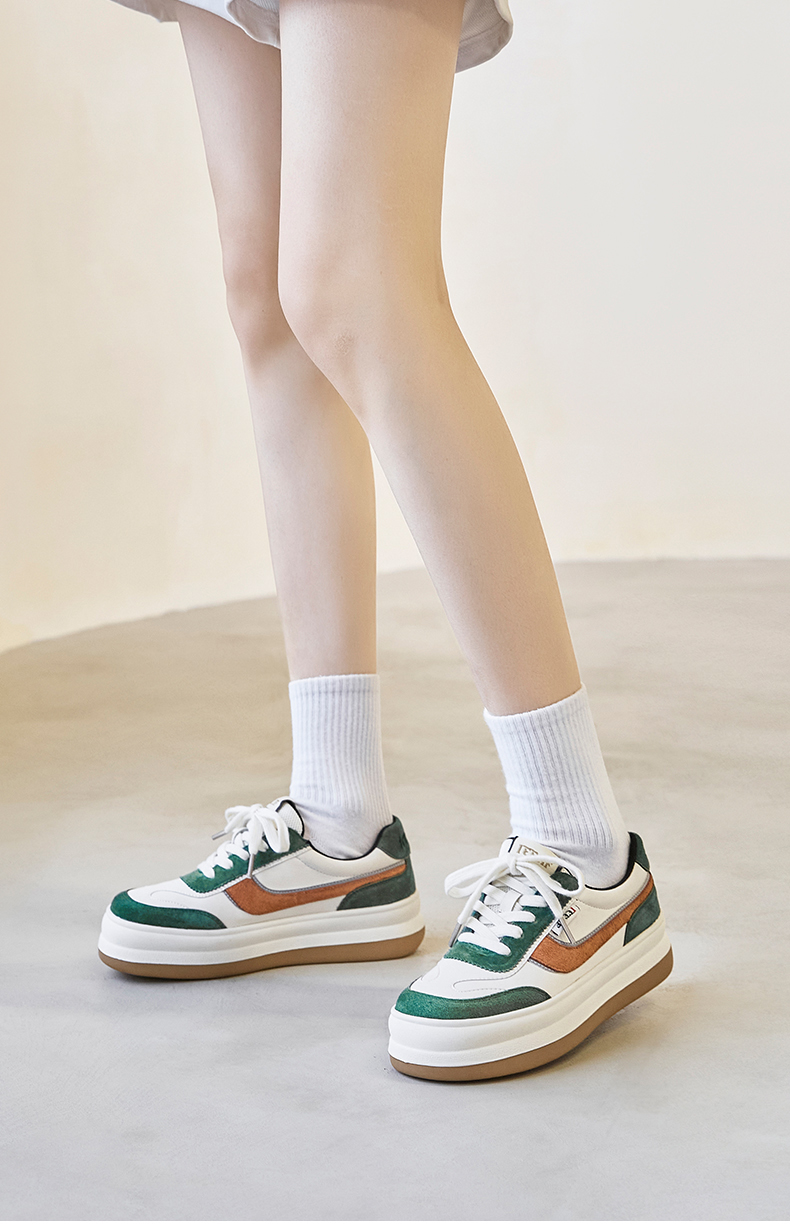 香香莉真皮休闲板鞋,猪巴皮系带女士休闲板鞋