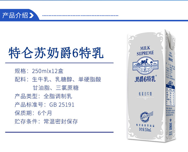 商品名称:蒙牛 特仑苏奶爵6特乳礼盒装250ML×12盒牛奶整箱全脂儿童老年人早餐礼盒