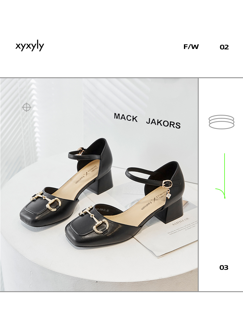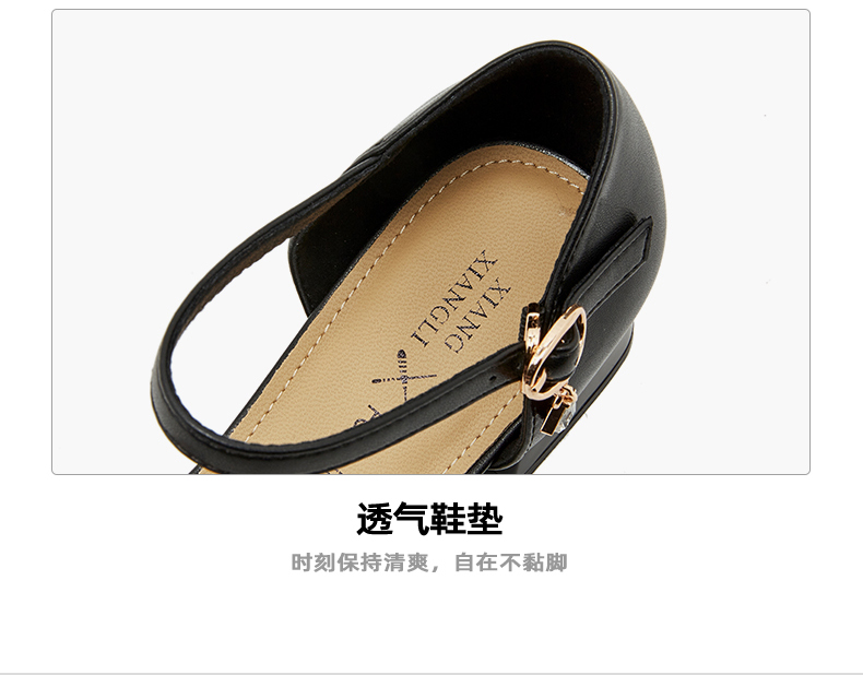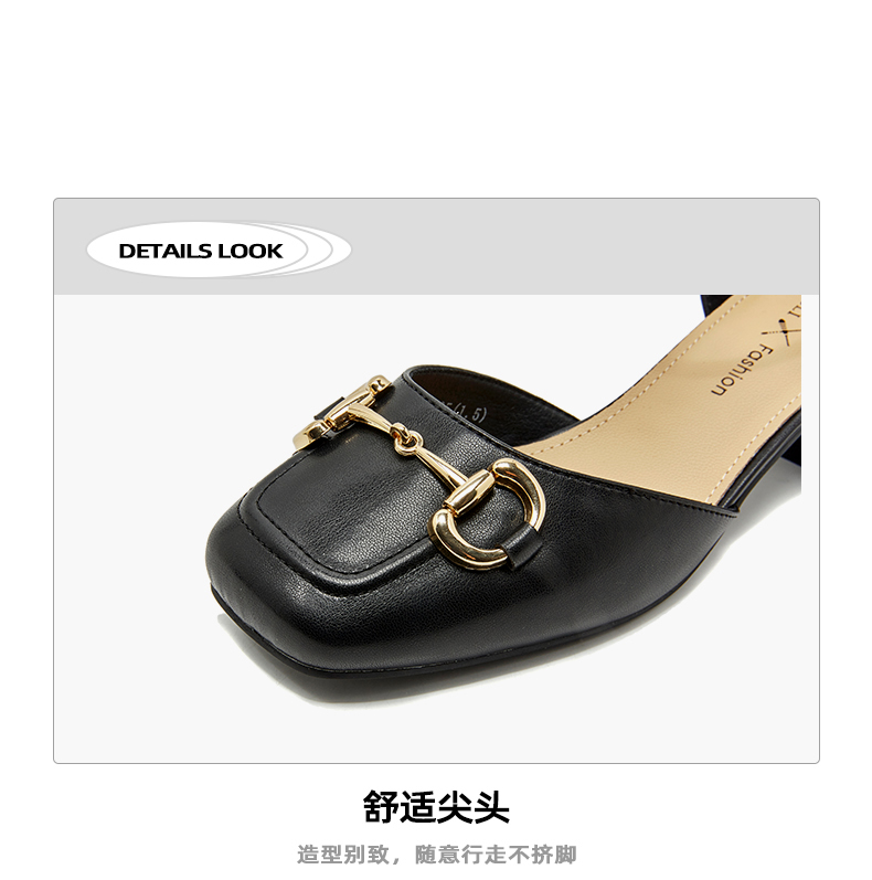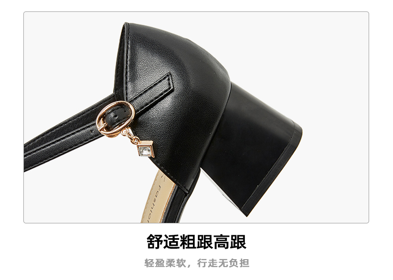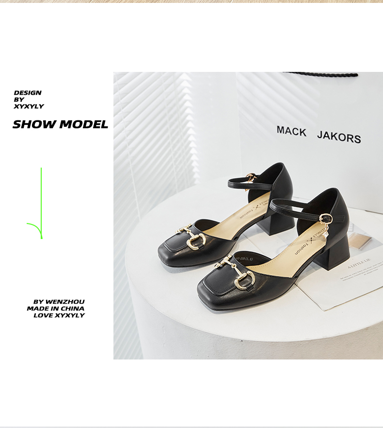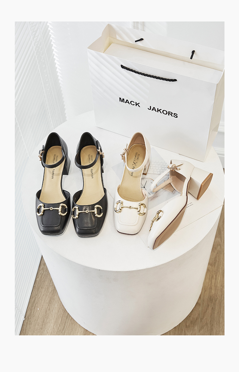商品名称:香香莉复古方头女士鞋子经典马衔扣外穿粗跟中空凉鞋