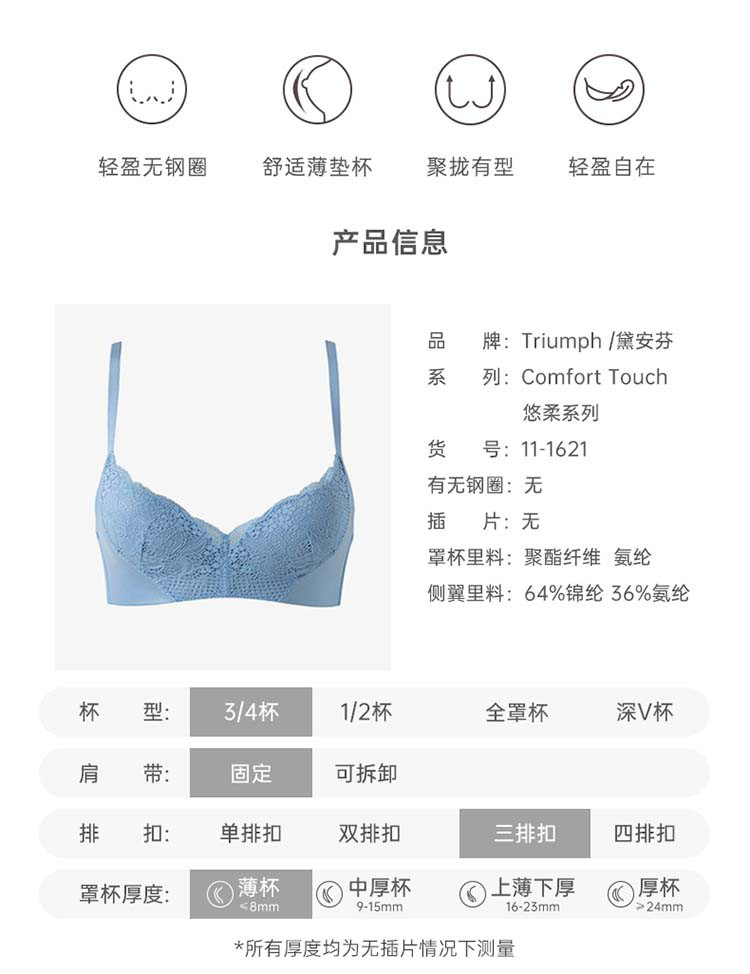 商品名称:【无钢圈】黛安芬悠柔蕾丝内衣大胸显小文胸11-1621 493960