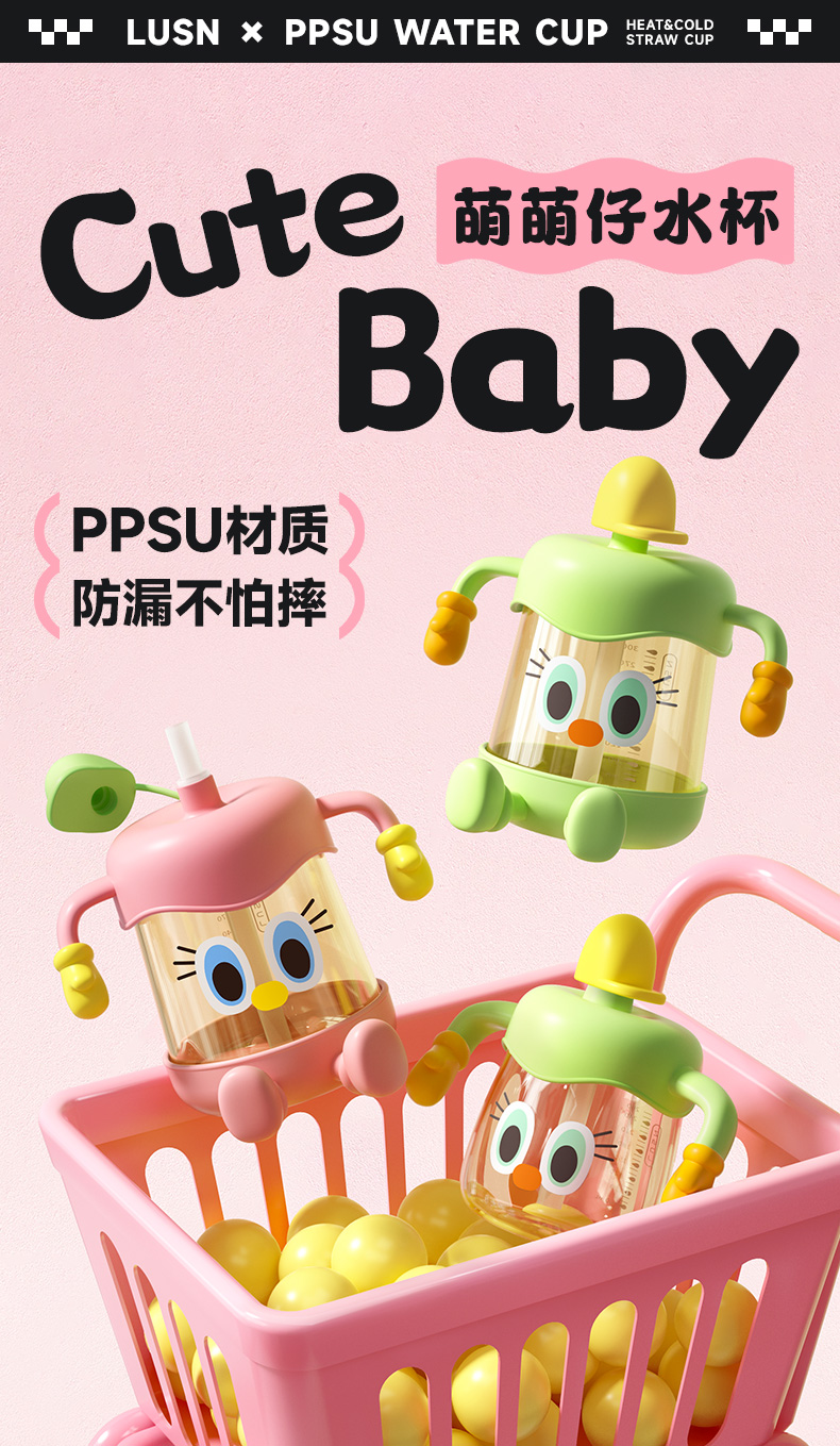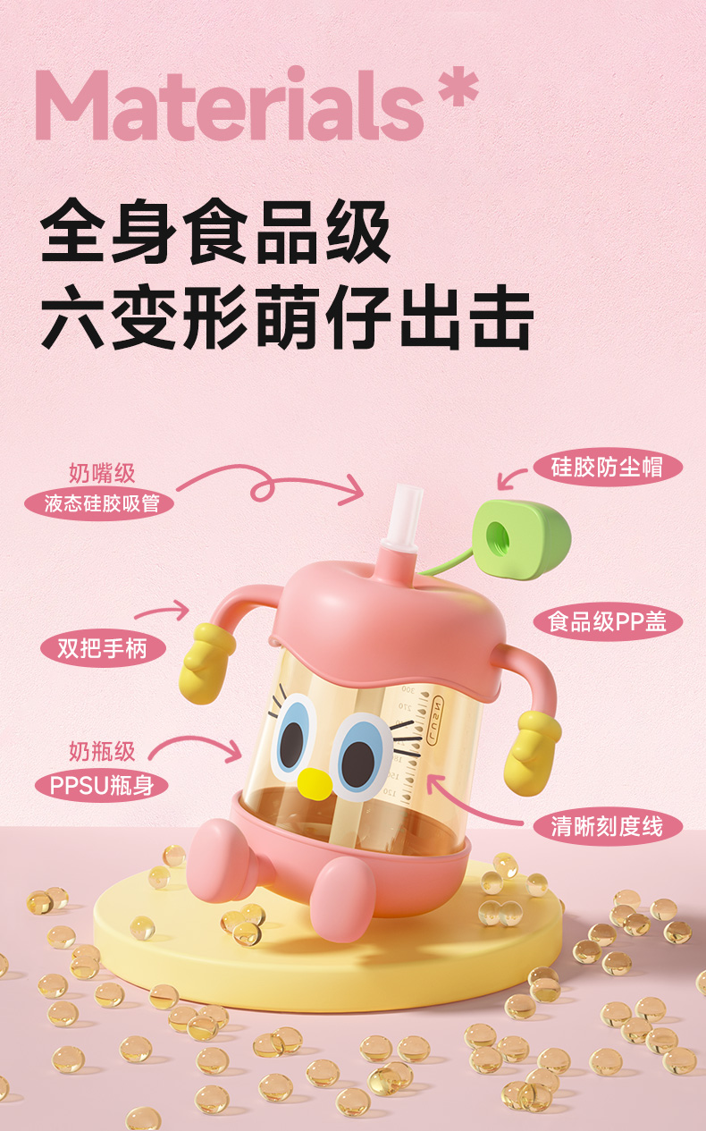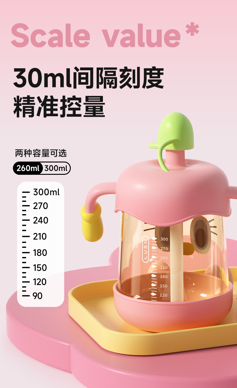 商品名称:如山儿童牛奶杯1-2-3岁以上宝宝喝奶瓶PPSU刻度直饮吸管水杯防摔