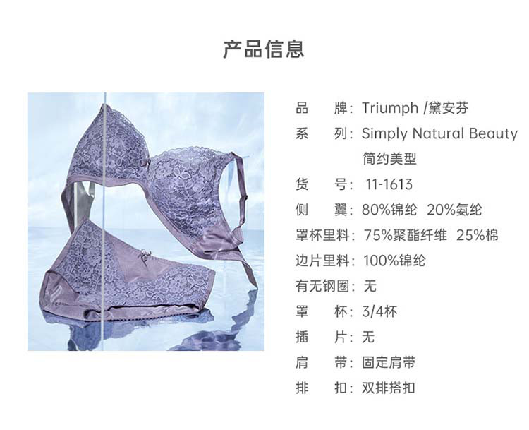 商品名称:黛安芬简约美型大胸内衣女性感蕾丝无钢圈薄文胸11-1613 436616