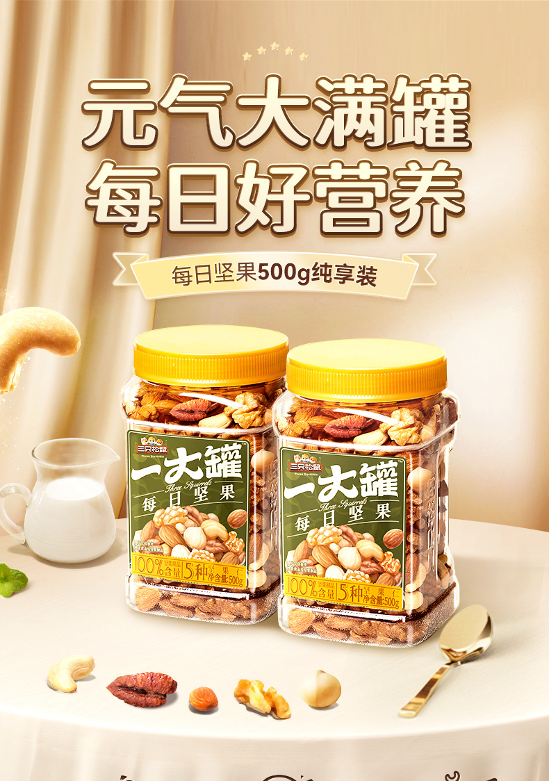 商品名称:三只松鼠罐装全坚果纯享款500g/罐0添加每日混合坚果健康大礼包送礼干果食品