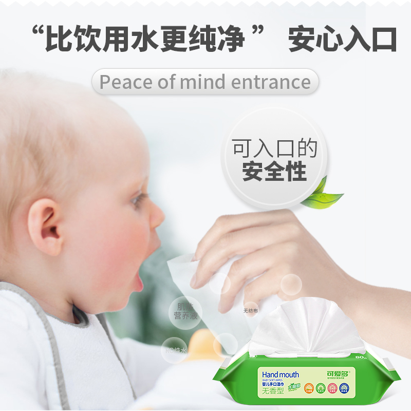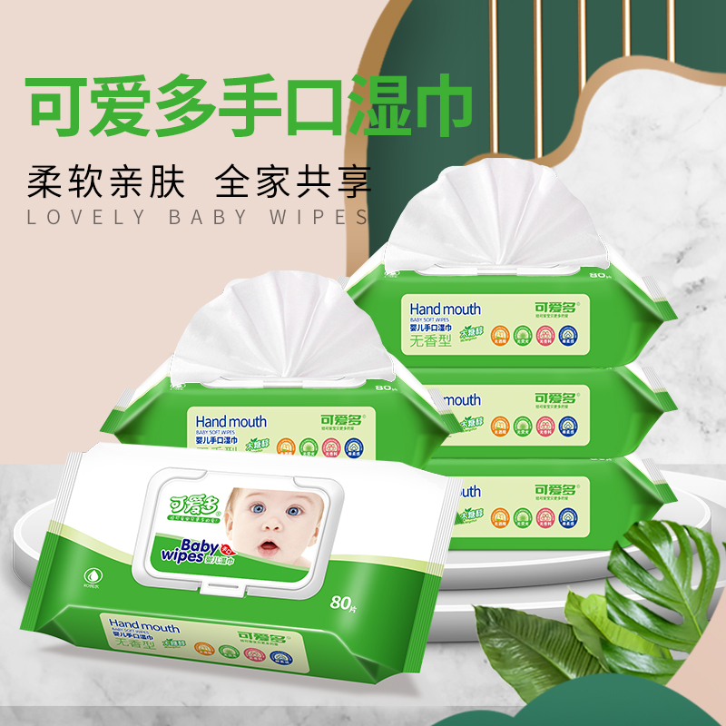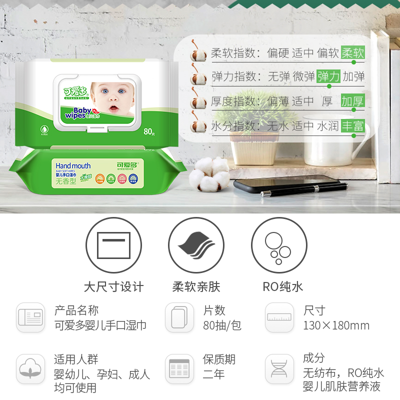 商品名称:【热卖单品】可爱多 婴儿手口湿巾80抽 盖装 不连抽13cm*18cm 新老包装随机发货