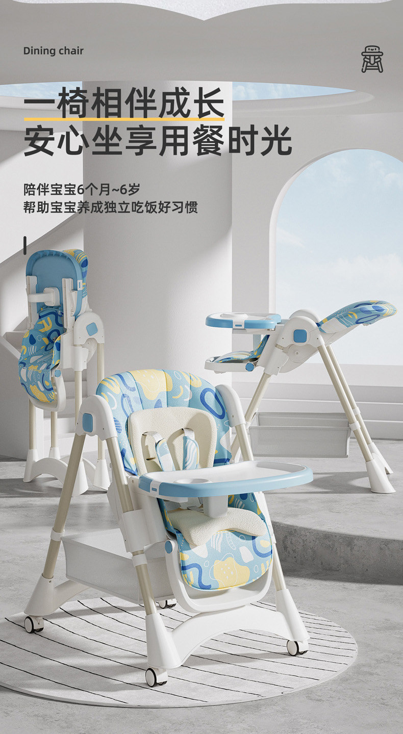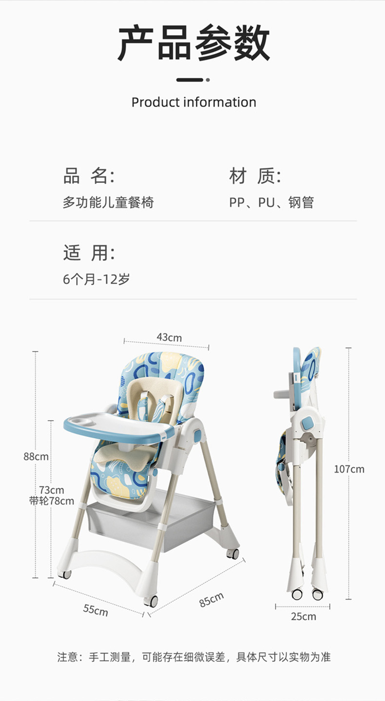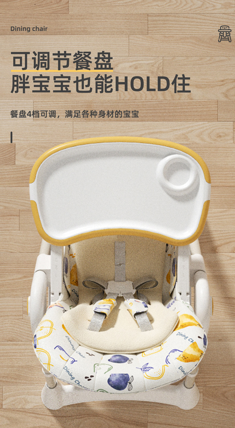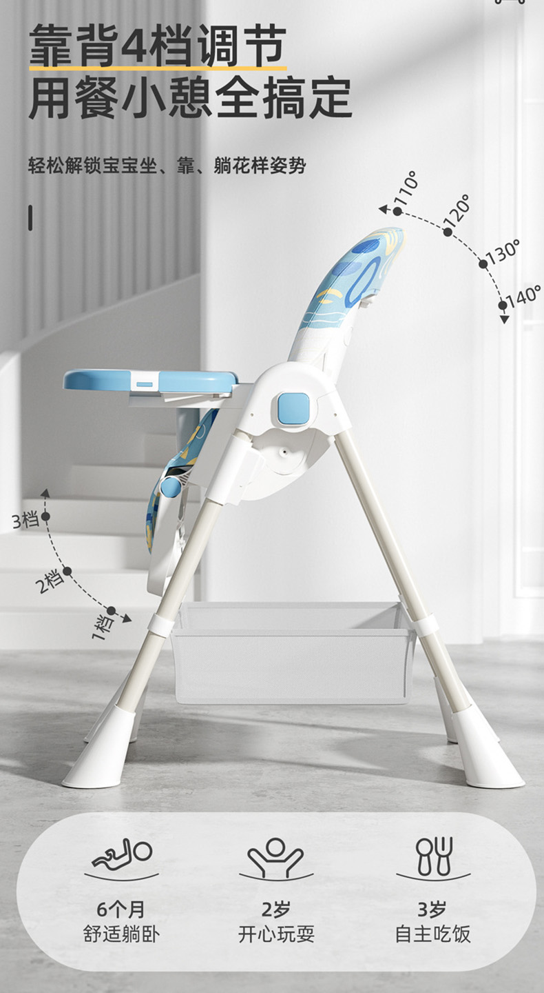 商品名称:儿童餐椅宝宝餐椅可折叠多功能小孩吃饭椅子家用便携式可移动 可躺可上下调节