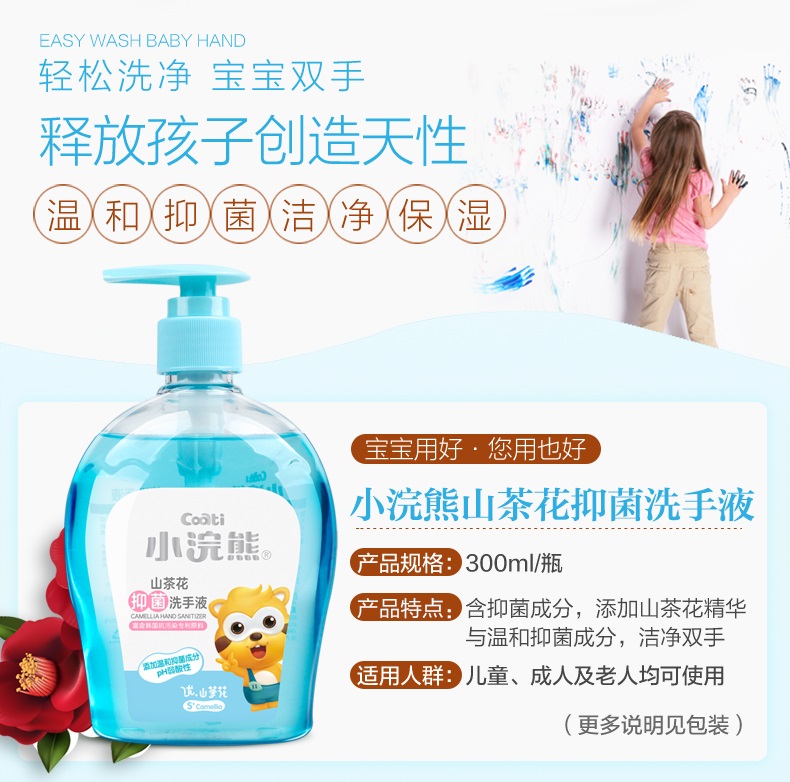 商品名称:【品牌直供】小浣熊儿童山茶花洗手液300ml