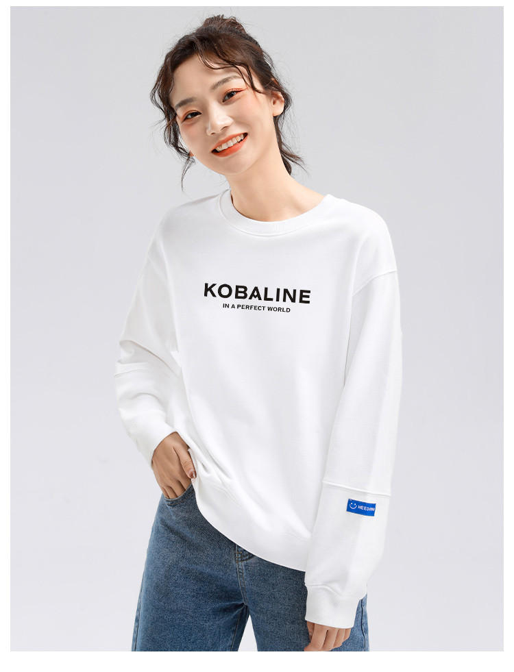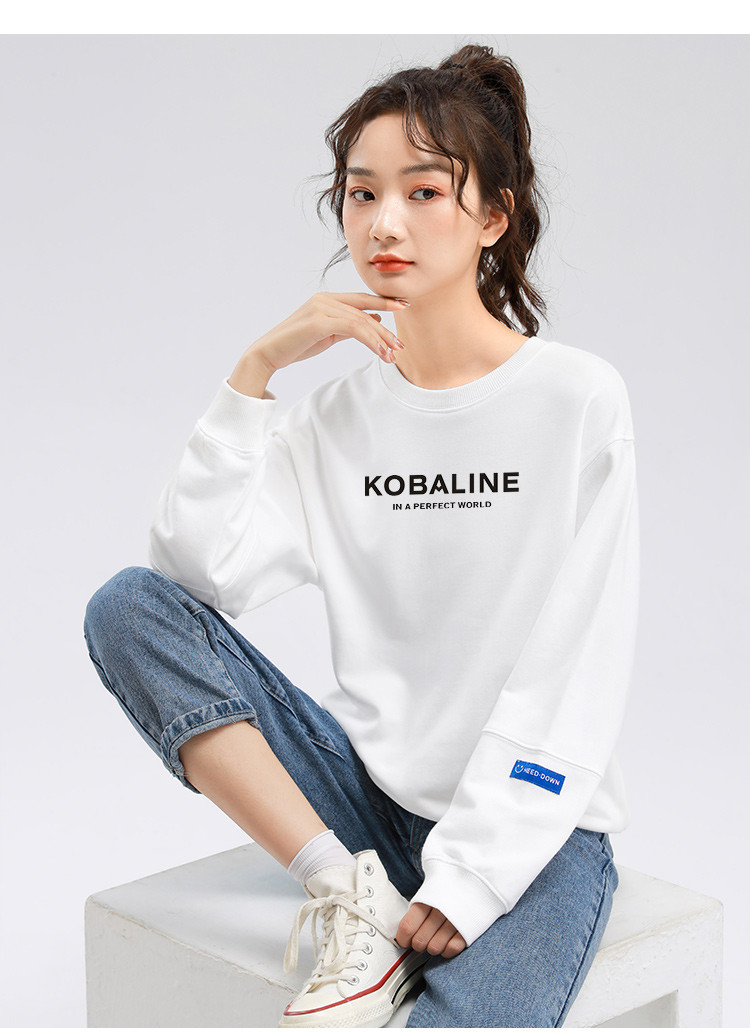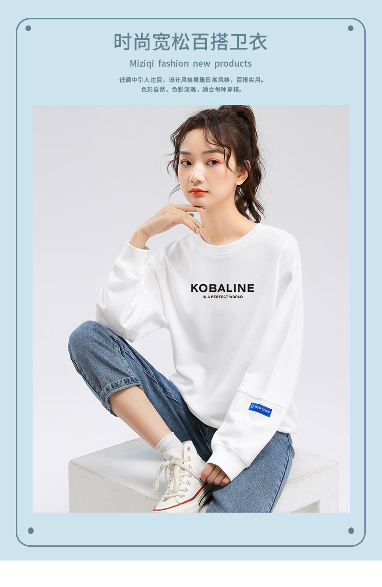 米子旗春秋季早春款圆领印花卫衣慵懒宽松长袖上衣女 841626