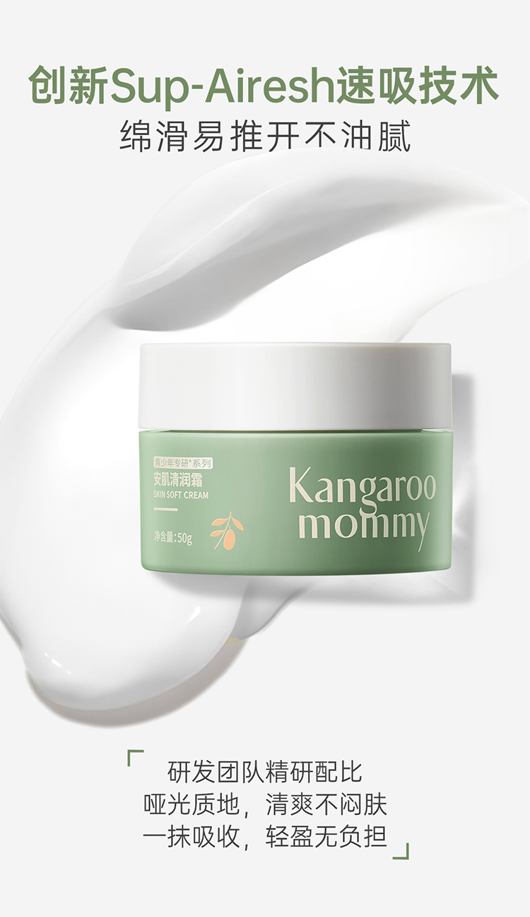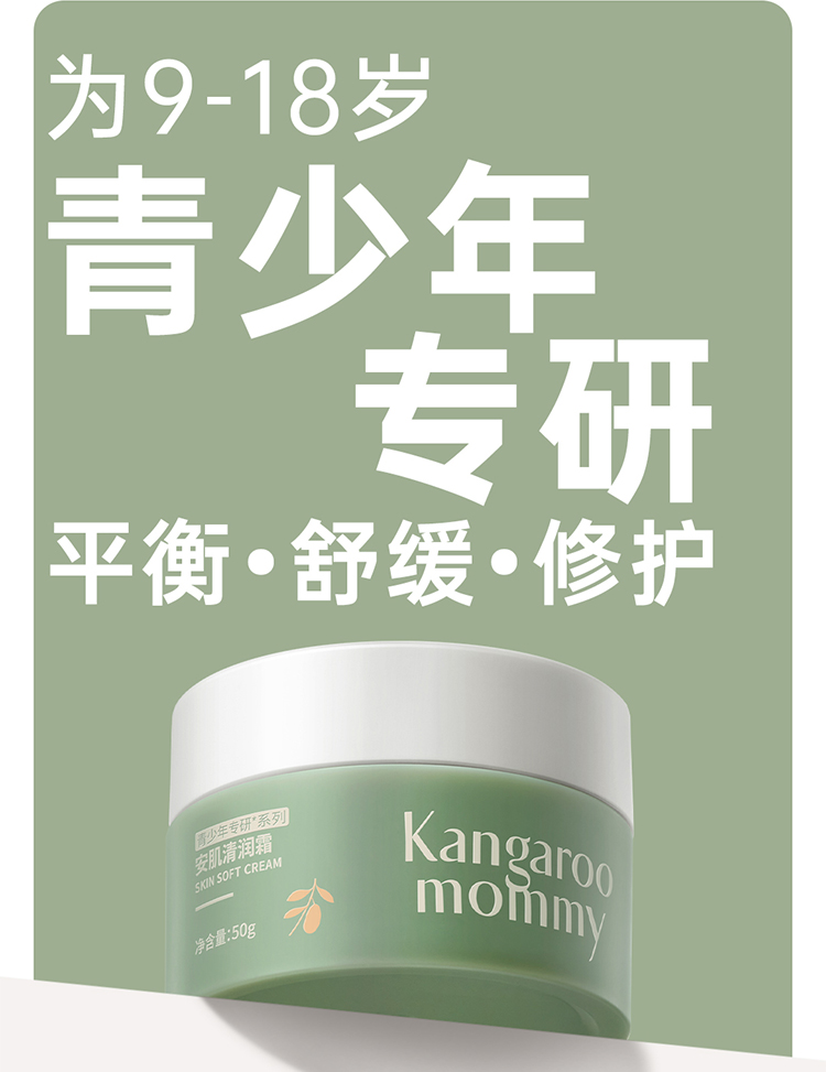 【青少年面霜】袋鼠妈妈儿童面霜秋冬滋润青少年护肤品保湿霜学生青春面霜润肤乳50g