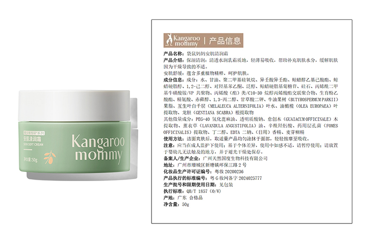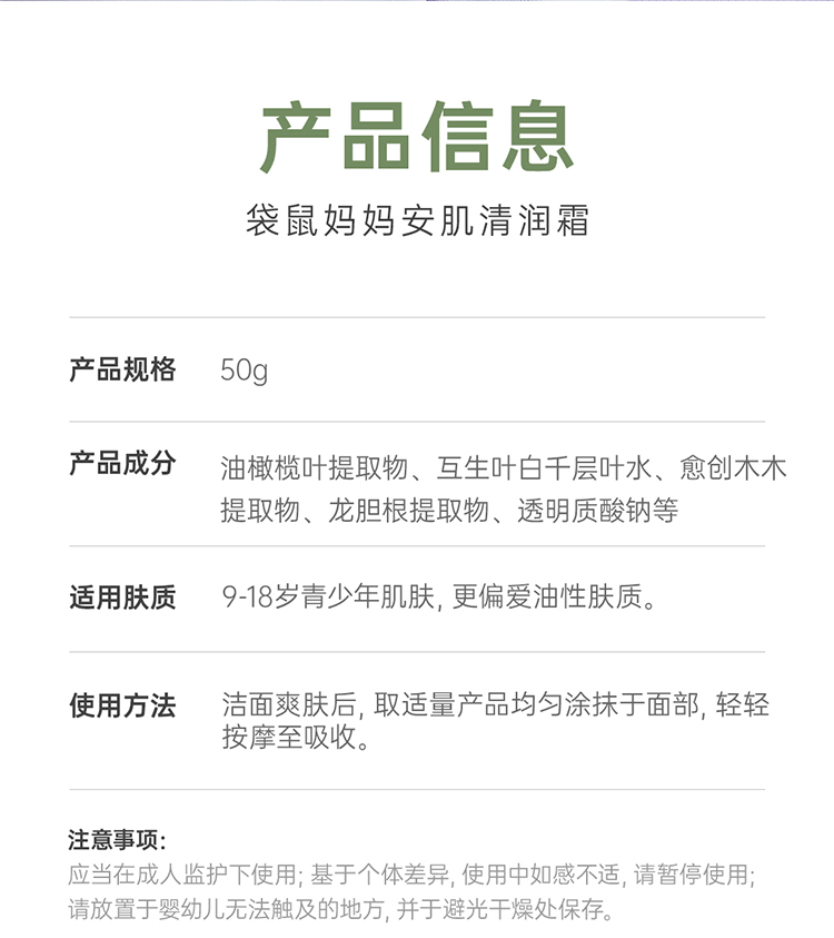 商品名称:【青少年面霜】袋鼠妈妈儿童面霜秋冬滋润青少年护肤品保湿霜学生青春面霜润肤乳50g