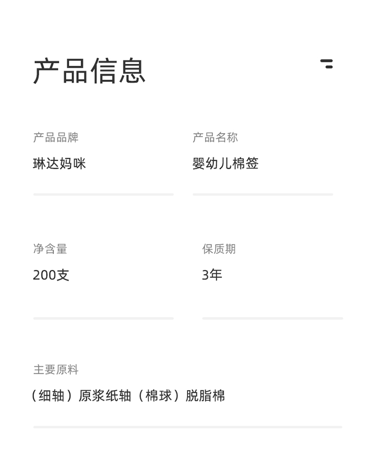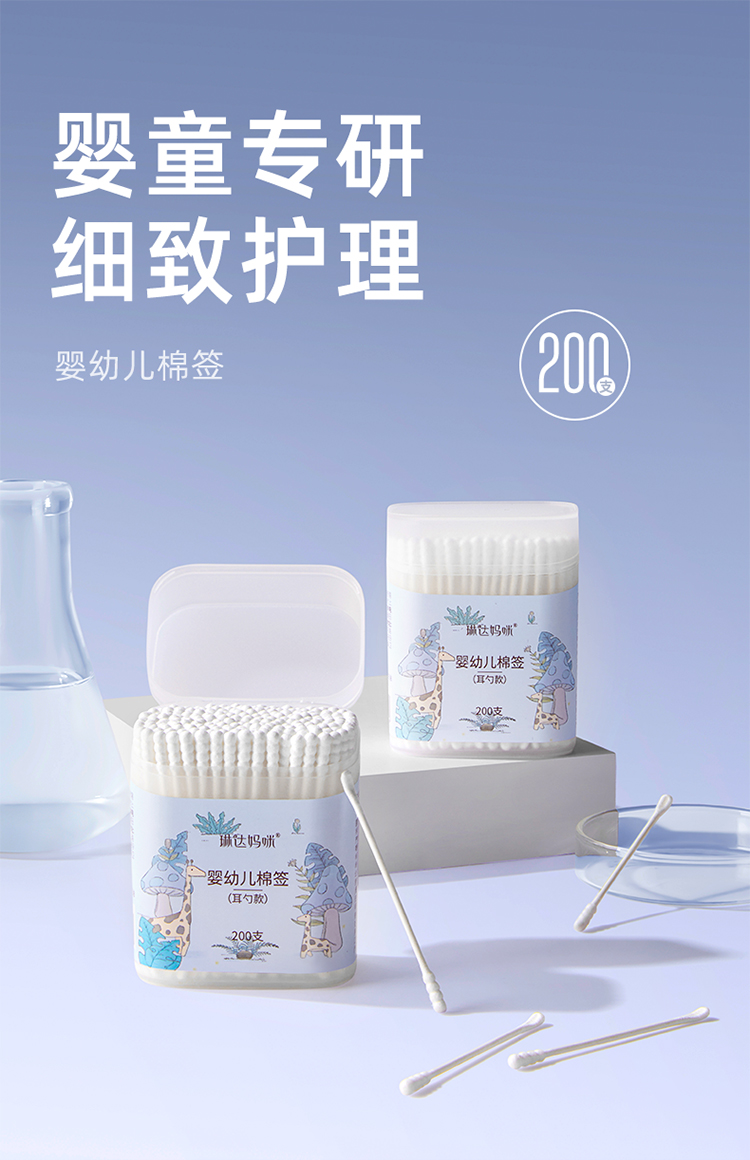 商品名称:【小红书好物推荐】琳达妈咪200支婴儿棉签棉棒耳勺款幼儿新生儿童宝宝多用双头棉花棒
