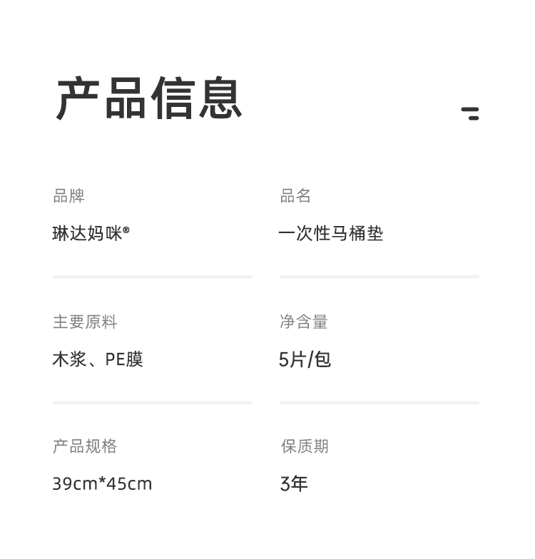 商品名称:【小红书好物推荐】琳达妈咪一次性马桶垫5片孕产妇防水坐垫纸旅行通用马桶套坐便套
