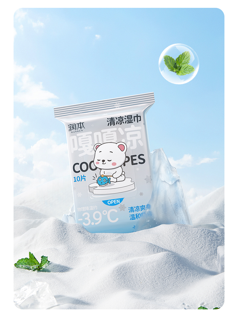 润本清凉湿巾冷感提神降温止汗夏天去味便携小包清洁劲凉湿巾纸10抽