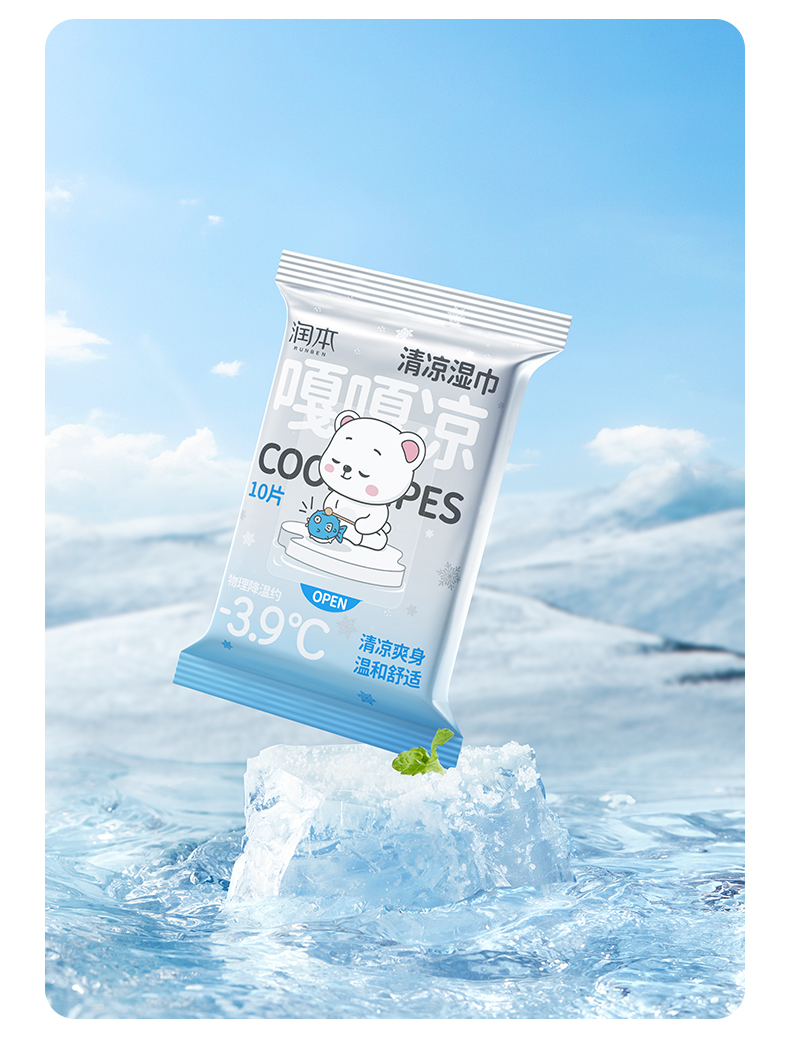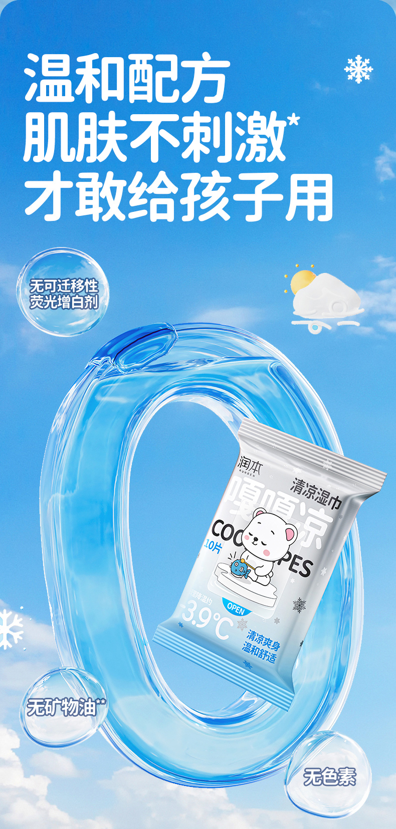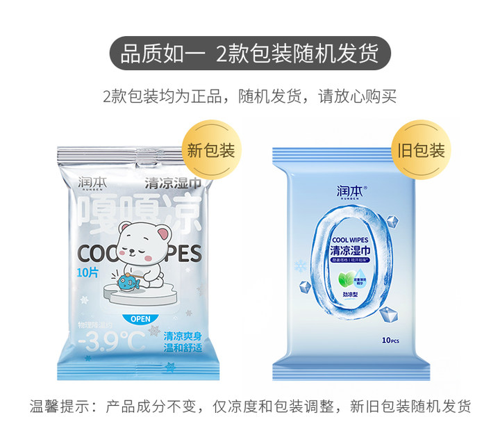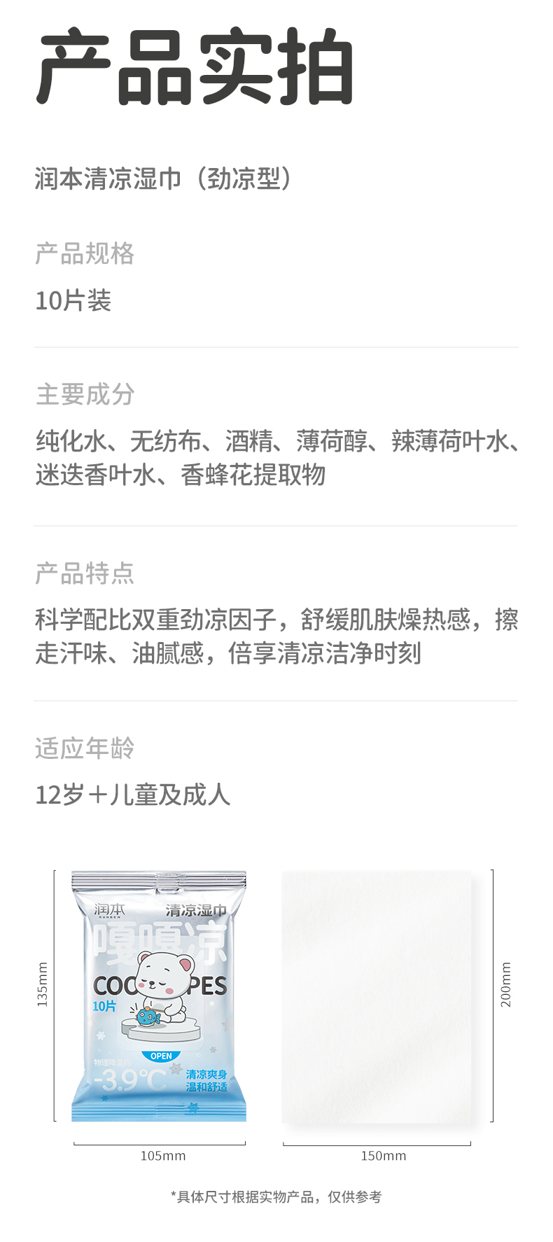 商品名称:润本清凉湿巾冷感提神降温止汗夏天去味便携小包清洁劲凉湿巾纸10抽