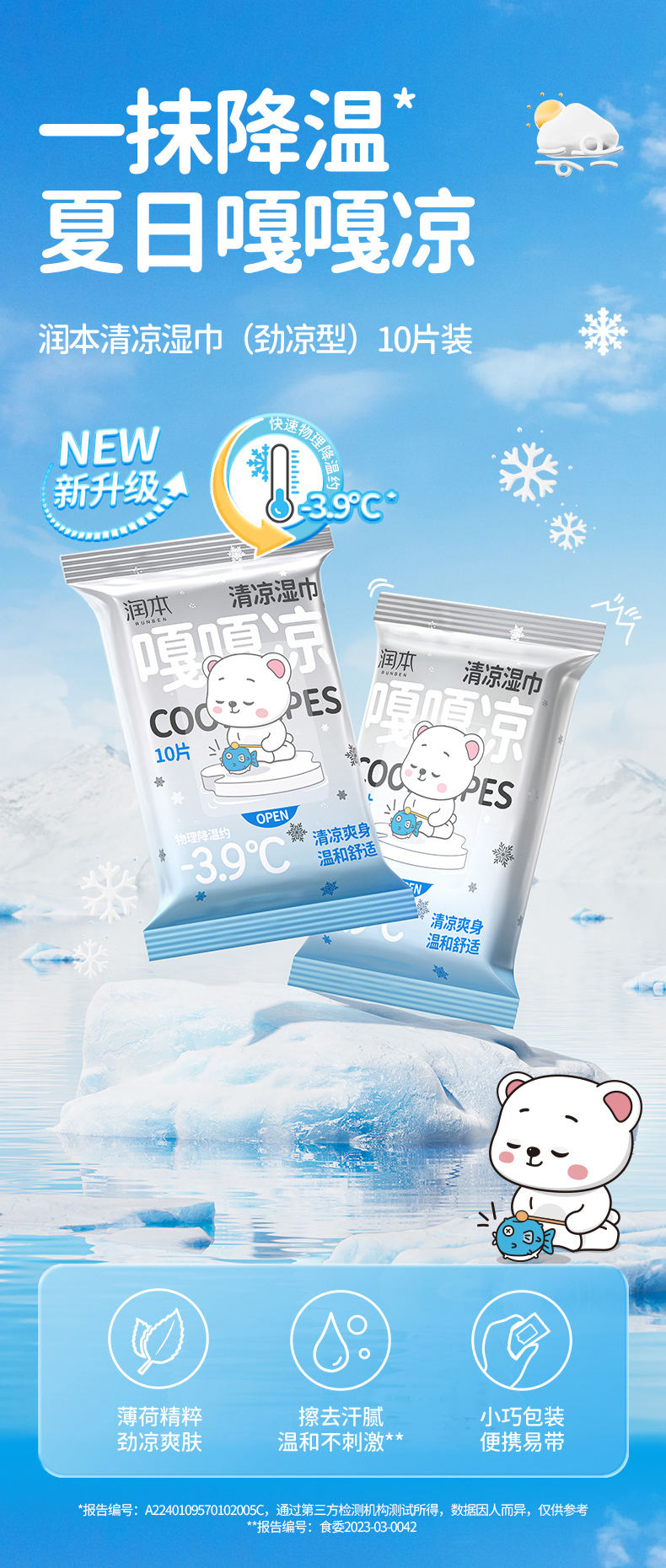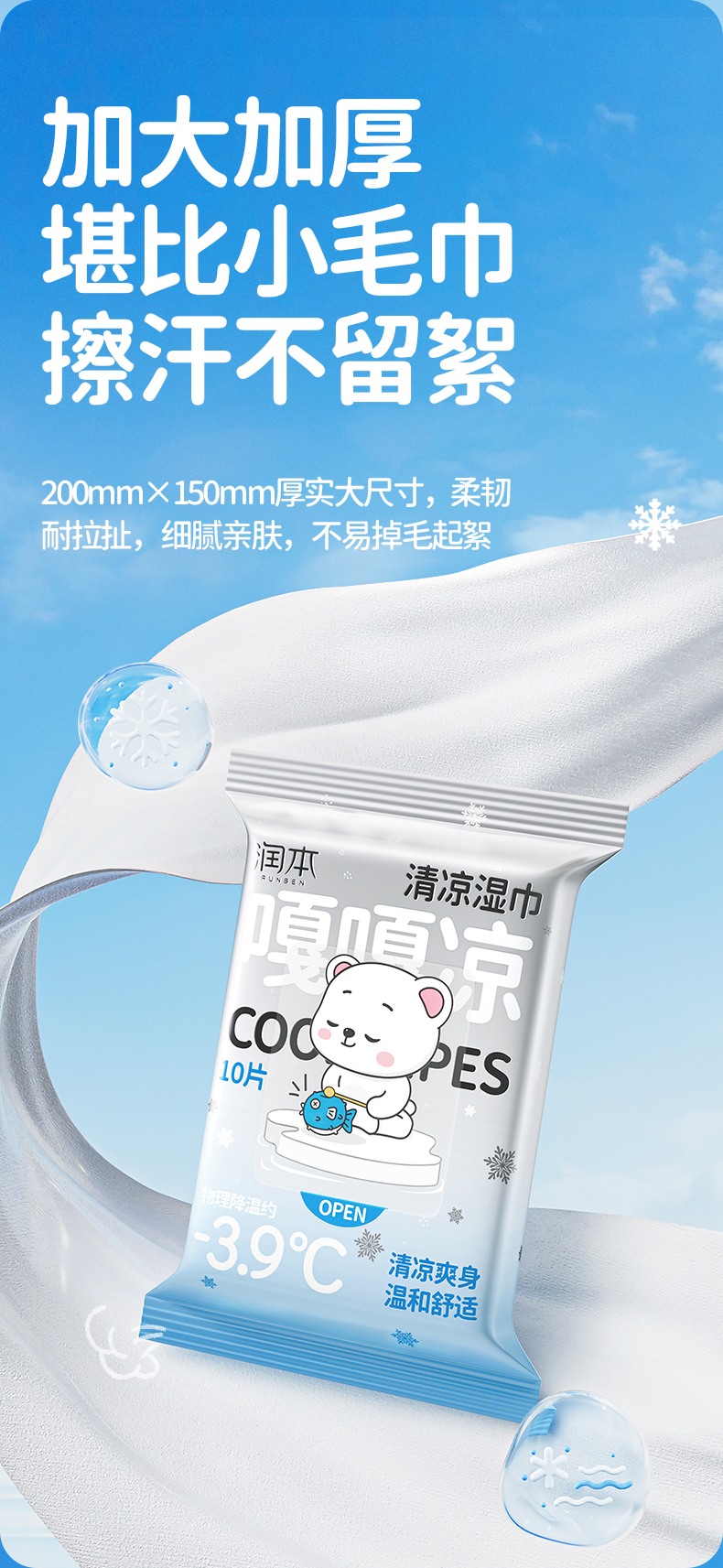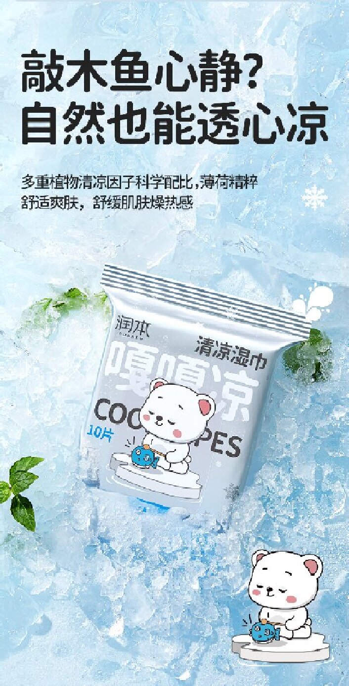 商品名称:润本清凉湿巾冷感提神降温止汗夏天去味便携小包清洁劲凉湿巾纸10抽