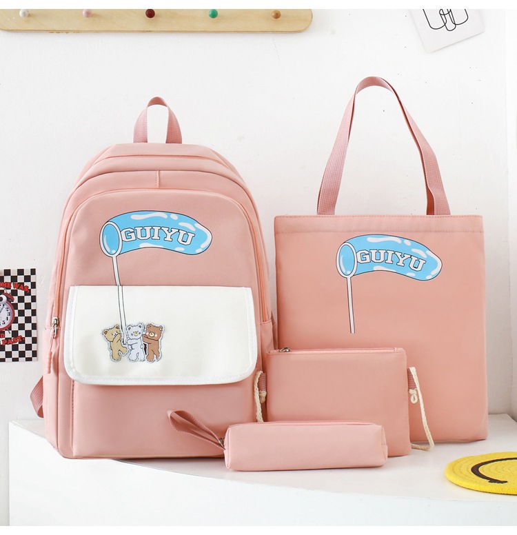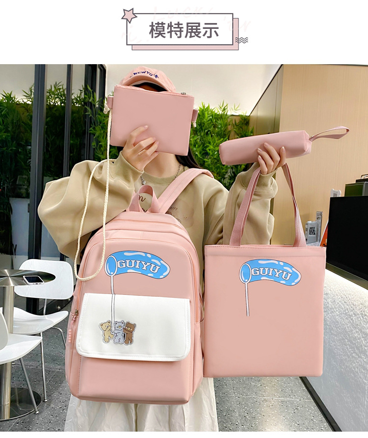 商品名称:彤彤兔 开学季校园大学生书包四件套书包大容量可爱双肩包女轻便背包通勤