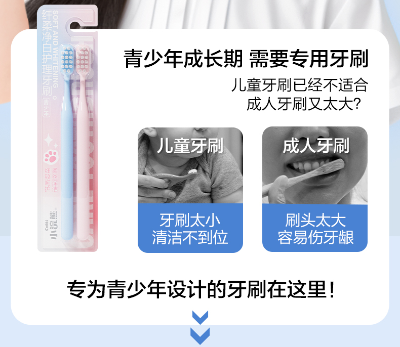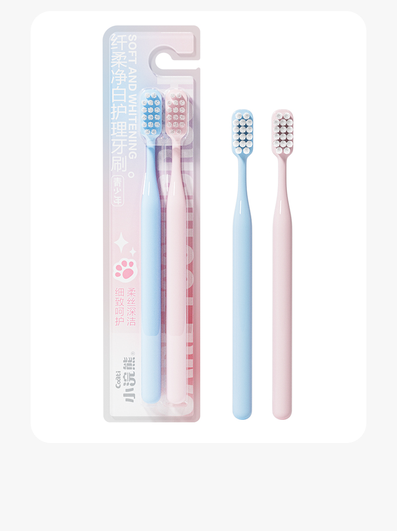 商品名称:【品牌直供】小浣熊青少年纤柔净白护理牙刷2支装软毛牙刷儿童适用口腔清洁柔密刷头