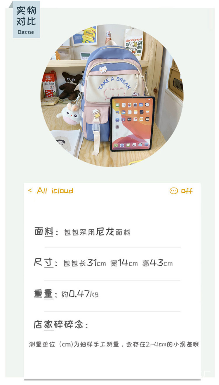 商品名称:彤彤兔 书包女韩版原宿大容量校园大学生休闲双肩包森系背包旅行