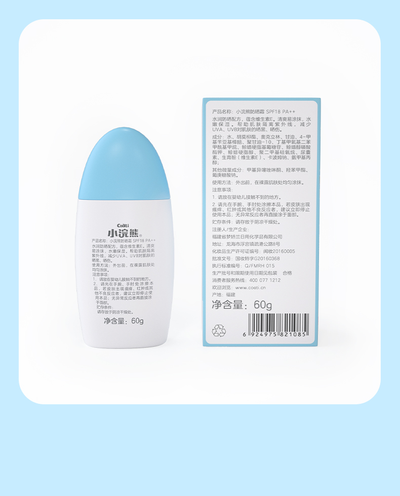商品名称:【防晒霜】小浣熊防晒霜60g面部全身可用儿童大人夏季水润防晒乳通勤防晒隔离SPF18pa++