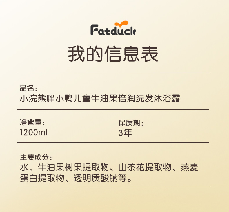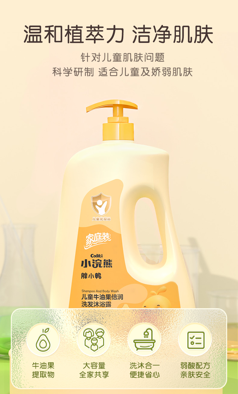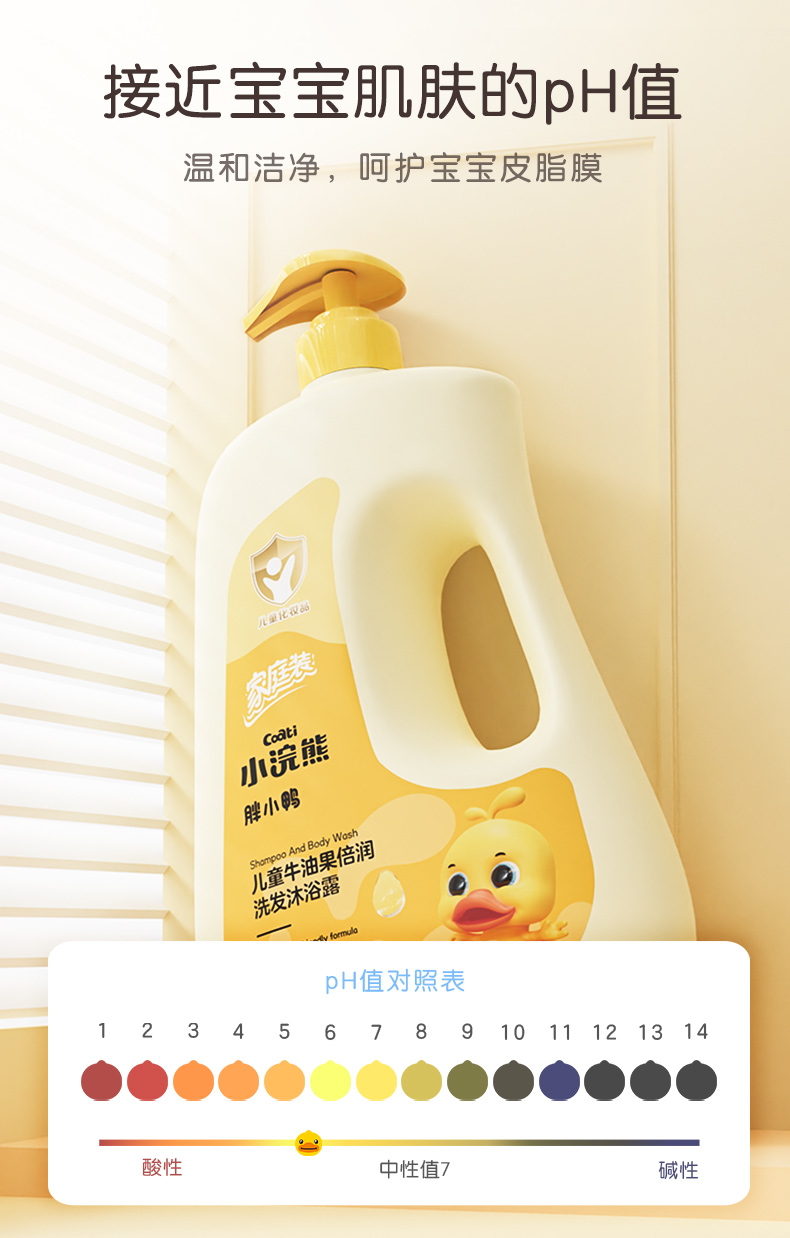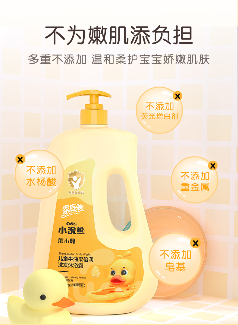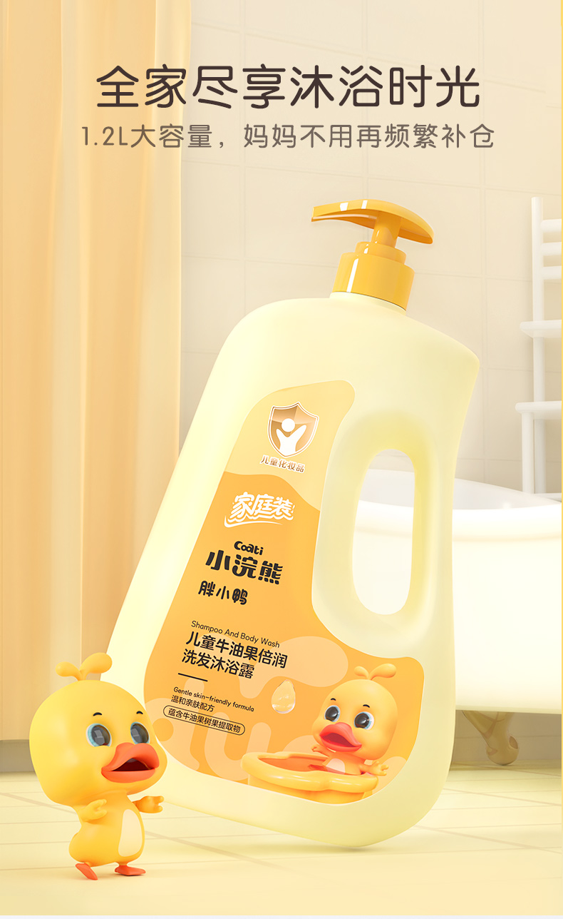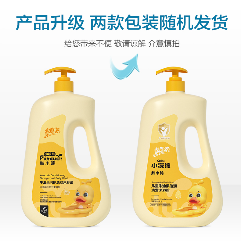 商品名称:【品牌直供】小浣熊胖小鸭儿童牛油果倍润洗发沐浴露1.2L大瓶装沐浴二合一全家共享