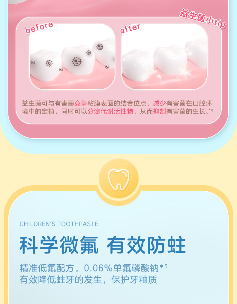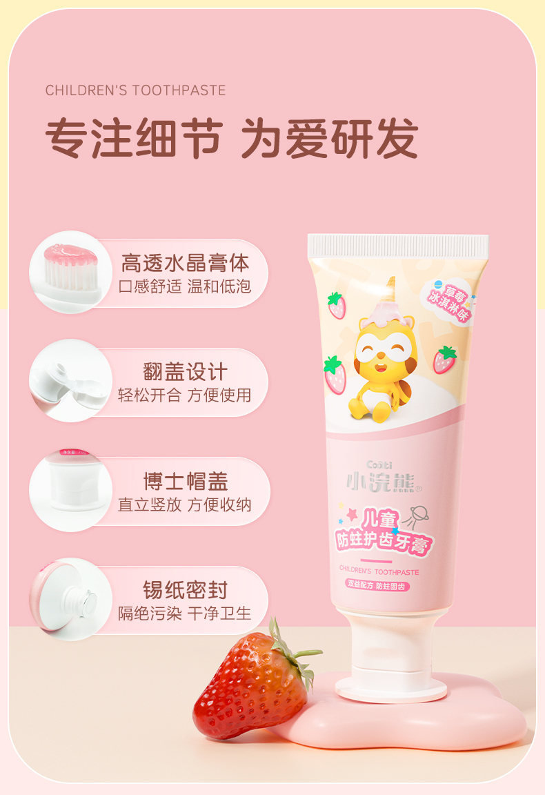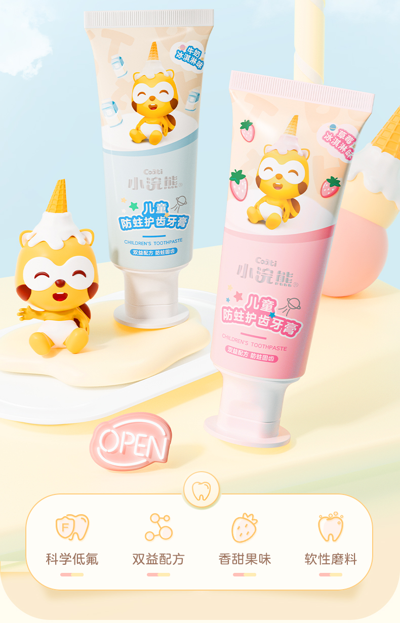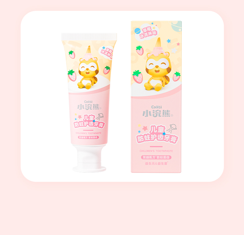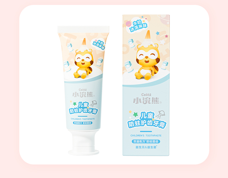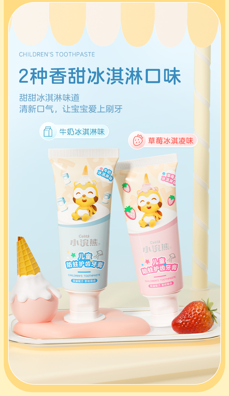 商品名称:【品牌直供】小浣熊儿童护齿牙膏70g益生菌低氟牙膏 牛奶冰淇淋+草莓冰淇淋味
