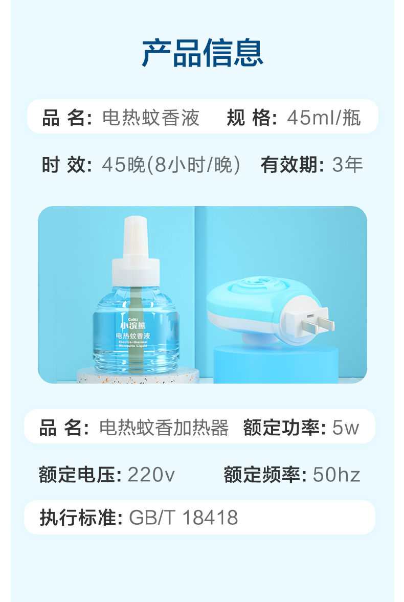 商品名称:【品牌直供】小浣熊COATI电热驱蚊香液45ml无香无味无灰全家共用驱蚊防蚊单瓶补充液