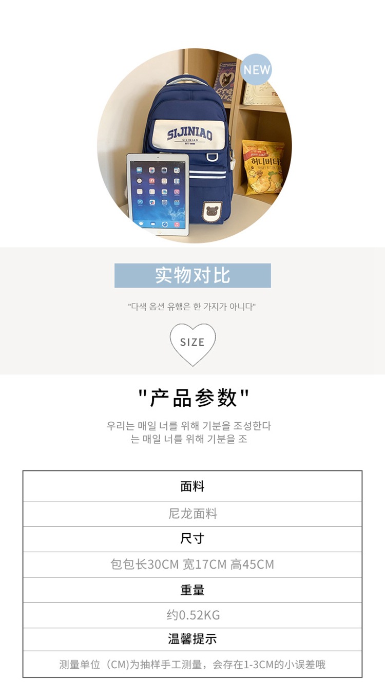 商品名称:彤彤兔 书包女韩版纯色小清新大学生背包校园ins风森系简约双肩包女
