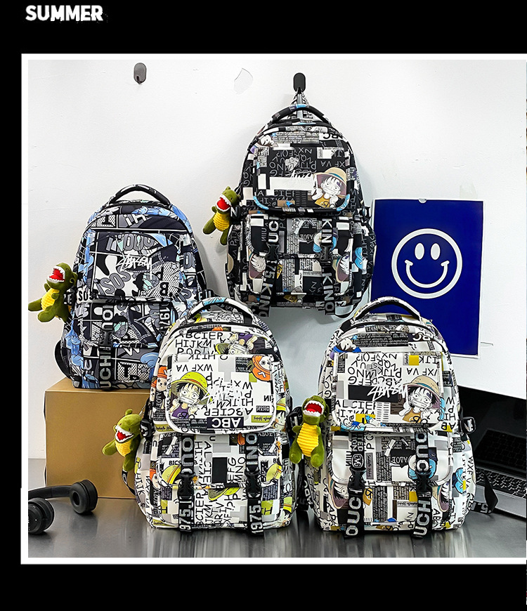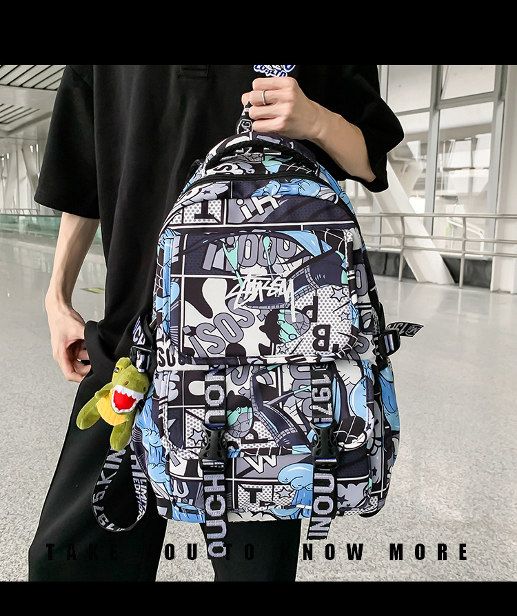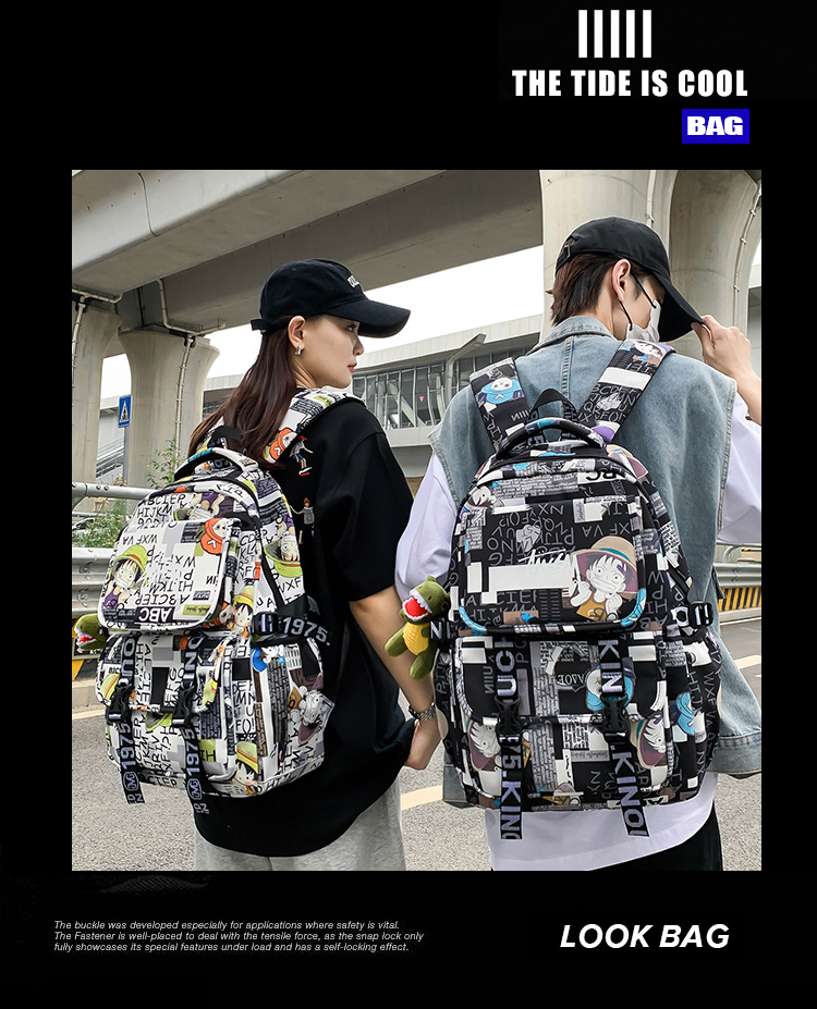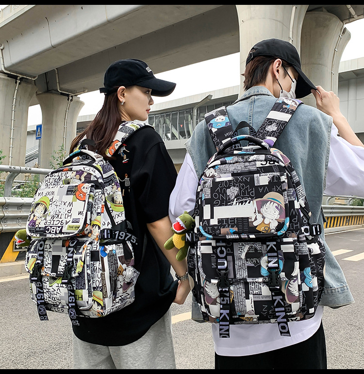 商品名称:彤彤兔 书包男女校园大学生大容量背包韩版潮流涂鸦双 肩包