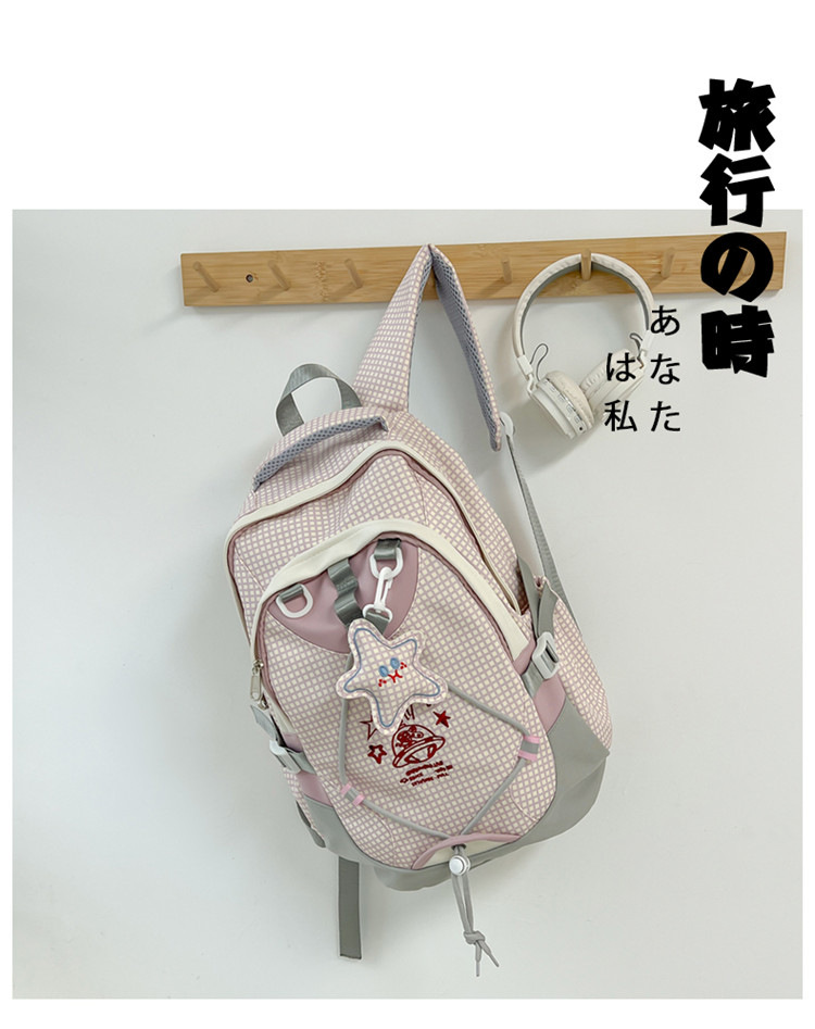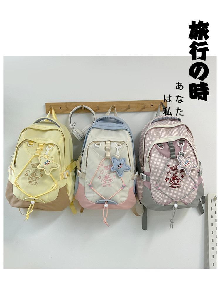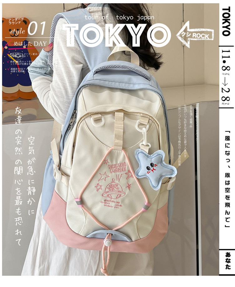彤彤兔 撞色校园大学生书包通勤大容量双肩包小清新森系少女背包ins风