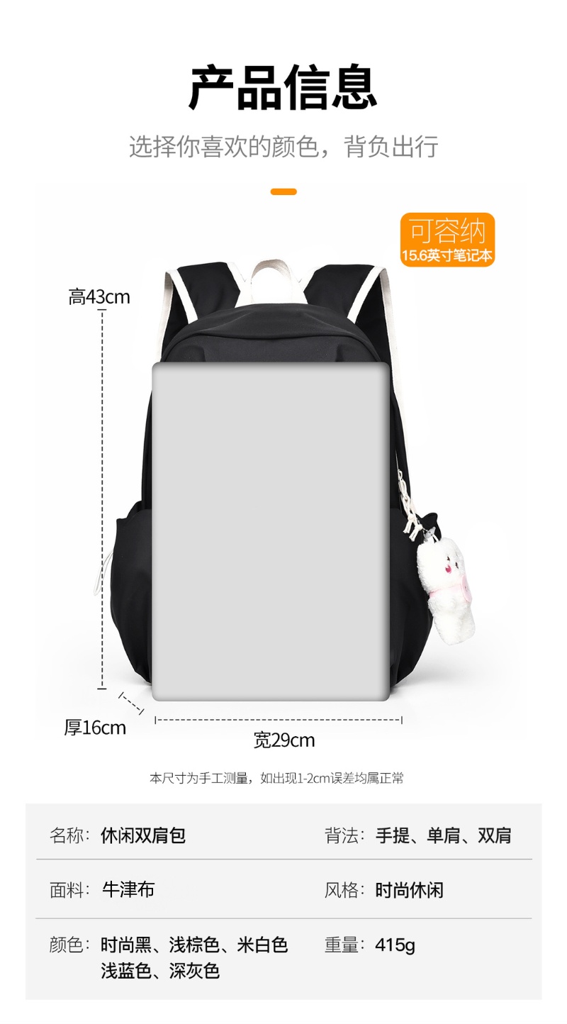 商品名称:彤彤兔 休闲男女同款双肩包可爱挂件学生背包日常休闲款大容量多 功能背包