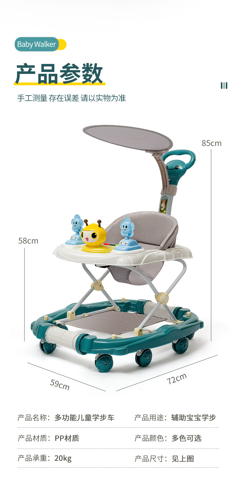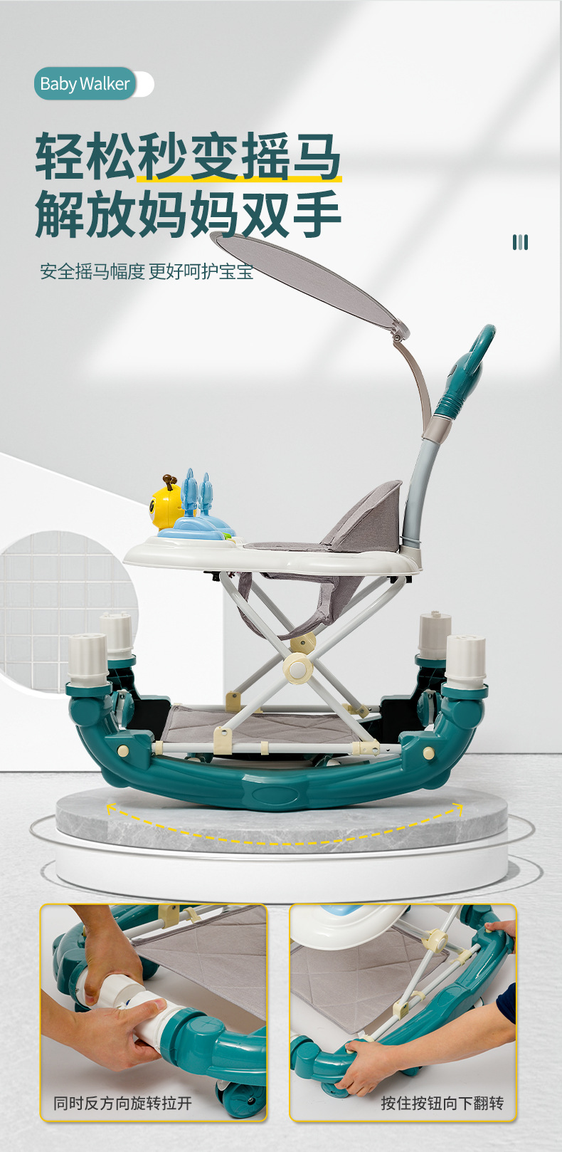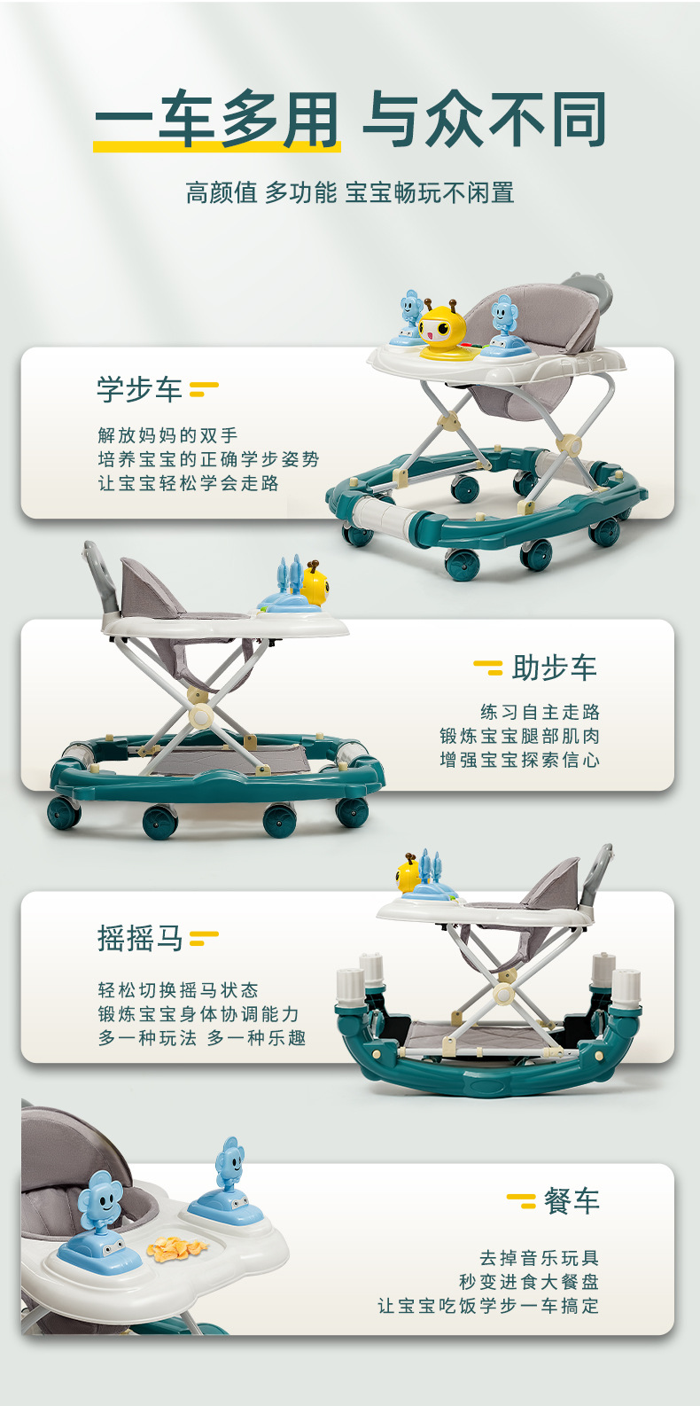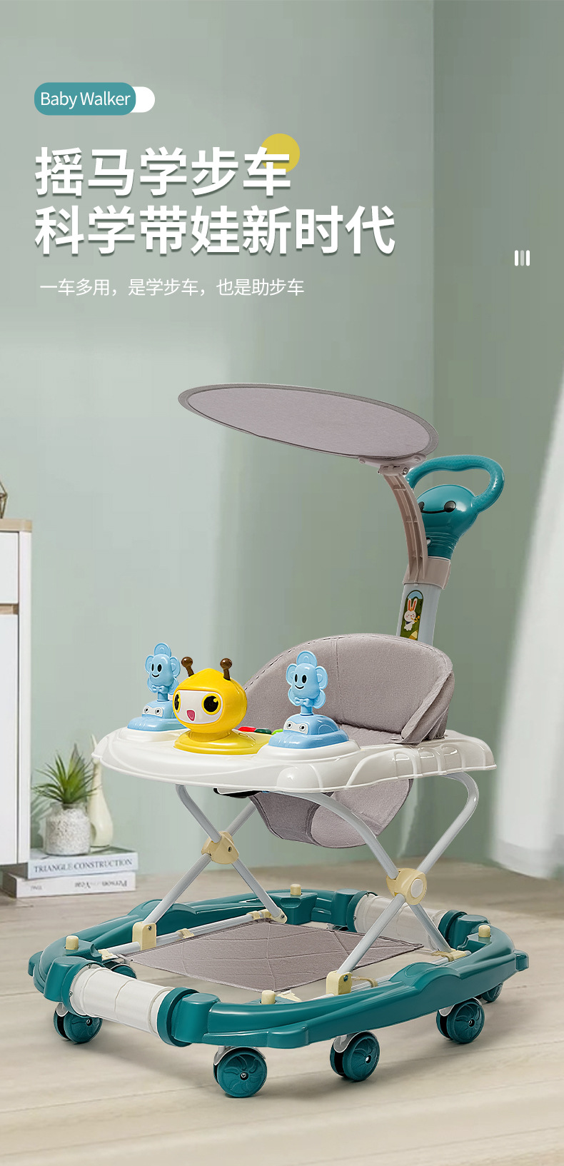 商品名称:兔小迪学步车防o型腿 防侧翻5档调节手推车可坐可推学行车起步车(可变摇摇马)