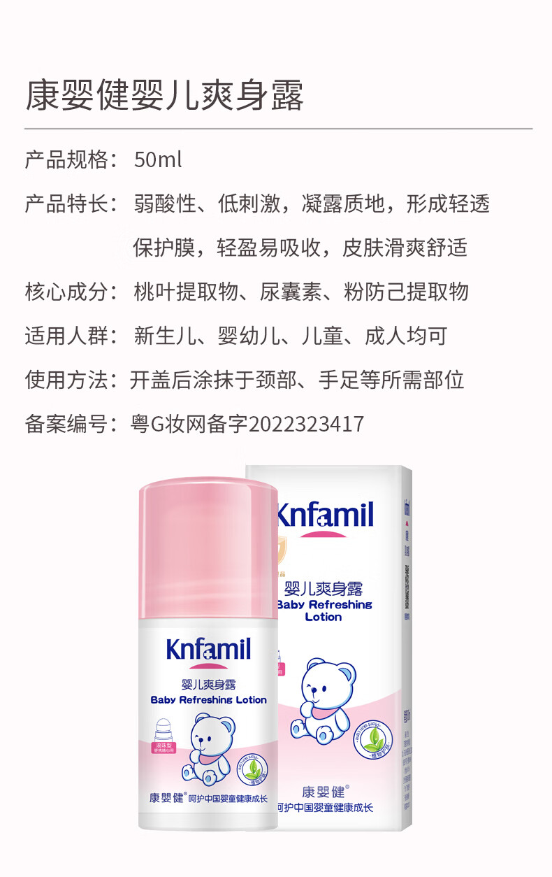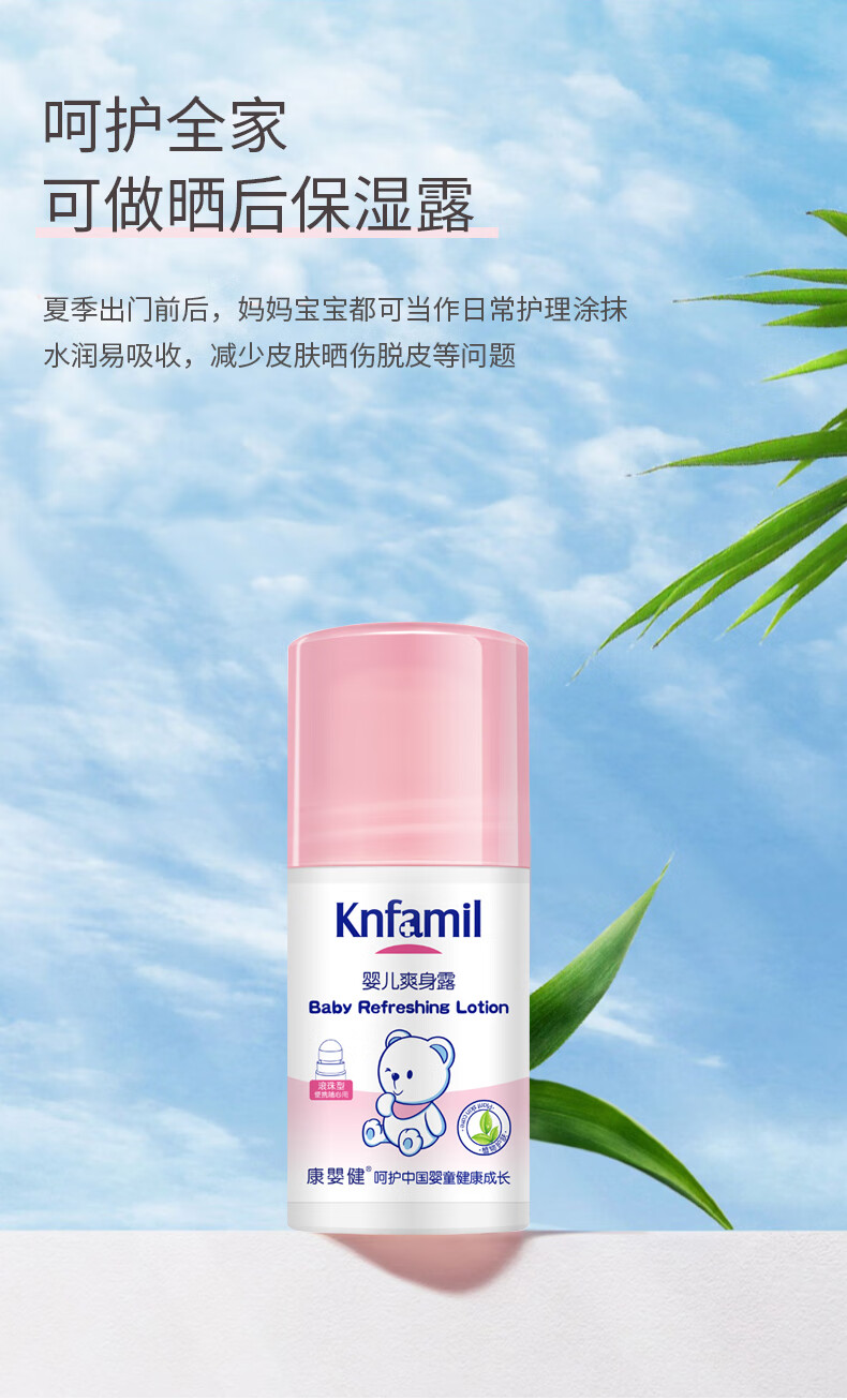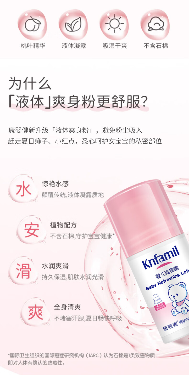 商品名称:康婴健婴儿爽身露100ml祛痱止痒桃子水新生宝宝痱子水桃叶精华液体爽身粉天然去痱