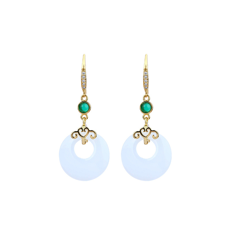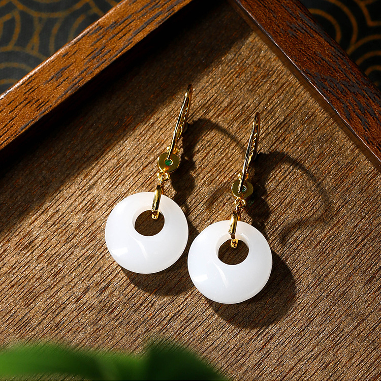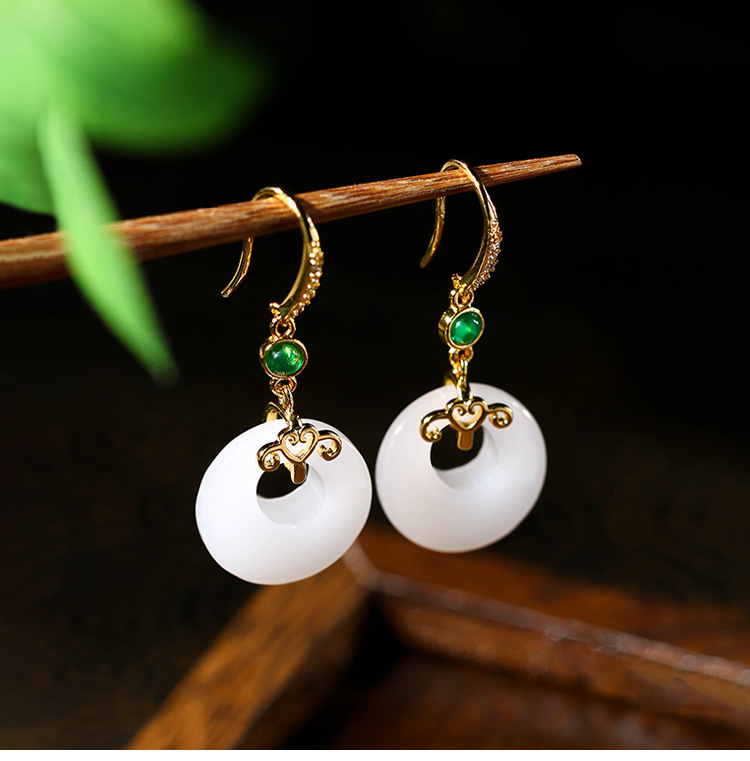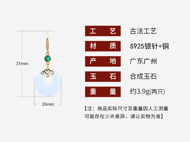 商品名称:彤彤兔 新中式国潮古风小众设计感平安扣合成玉石耳环